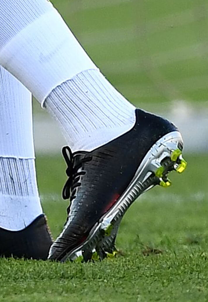 New Monaco signing and Swiss defender Terence Kongolo was spotted wearing a blacked out pair of Nike Mercurial Vapor XI boots during the club’s training session ahead of their Trophee des Champions match against PSG. Disguising the “Time To Shine” colourway originally launched in May, Kongolo then stepped out to face PSG wearing a modified pair of “Lock In Let Loose” Mercurial Superfly X boots with the Flyknit collar cut to a lower height.