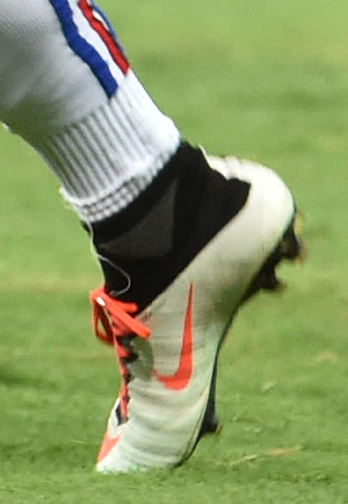 Another player who opted for a simplistic custom Nike Mercurial Superfly V design was Karol Linty. The Sampdoria player went for a tricoloured combo of a white upper with black Dynamic Flyknit Collar and orange laces and Swooshes.