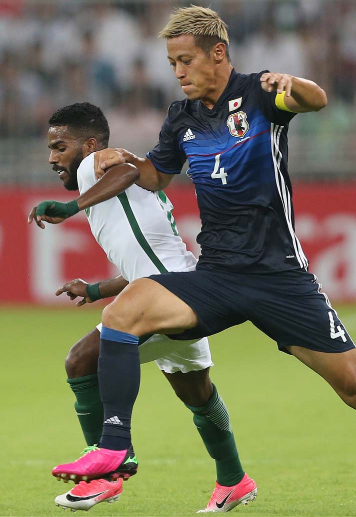 Japan had already secured their place in Russia next summer and let their foot off the pedal as they lost 1-0 to Saudi Arabia, who in turn joined the Japanese in qualifying for the 2018 World Cup. Keisuke Honda was in action for Japan wearing the new "Pink Glow" Mizuno Rebula V1 colourway.