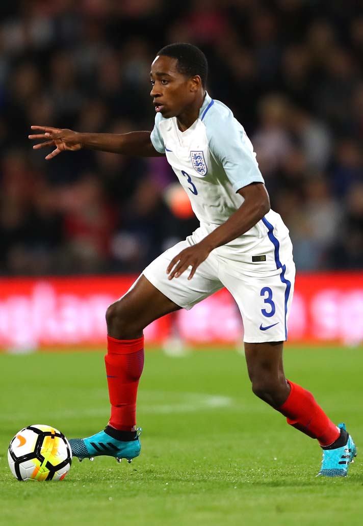 Kyle Walker-Peters continues to rep the adidas Glitch silo as the Three Stripes dish out the concept to their next generation of players. The Tottenham youngster was in action wearing the bright blue 'Fluido' colourway as England U21 beat Latvia 3-0 at the Vitality Stadium.