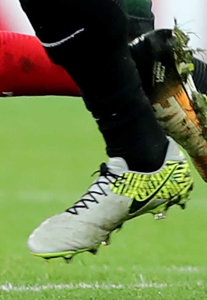 More custom creations were on show in Russia as Thomas Phibel was sporting a pair of Nike Tiempo Legend 6 boots with volt "Safari" pattern backing up a cleaner upper. Smart stuff from the Anzhi Shakalackaboomting man.