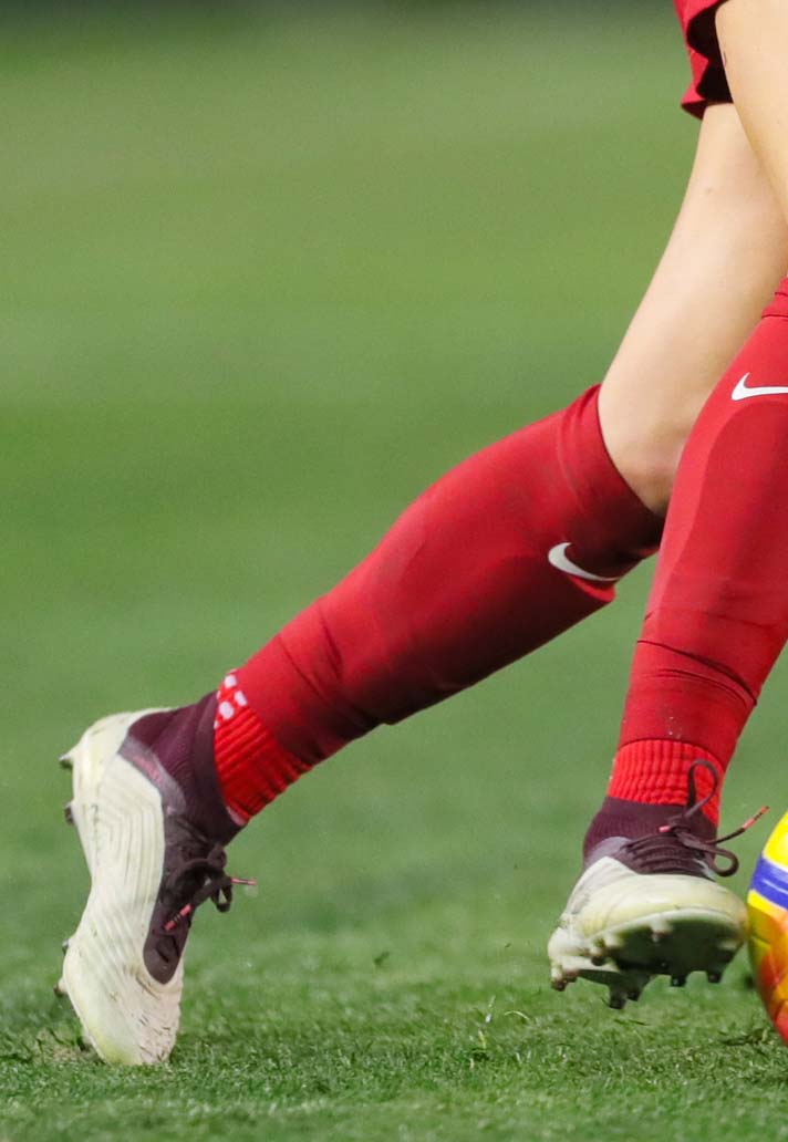 Emily Sonnett used the USA's fixture with Denmark to sport the first women's exclusive design of the adidas Predator 18. The "Vapour Grey/Maroon" colourway dropped with a slightly narrower fit and a smaller size run.
