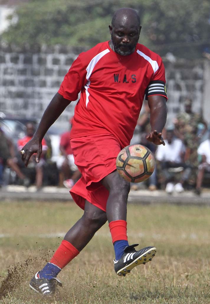 Ahead of his inauguration today, Liberia's president-elect George Weah spent the weekend having a kick about with his pals. The 1995 World Player of the Year dusted off his Copa Mundials to assemble a team of all stars to take on an Armed Forces of Liberia team.