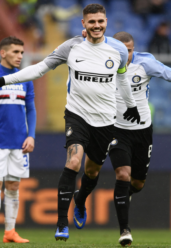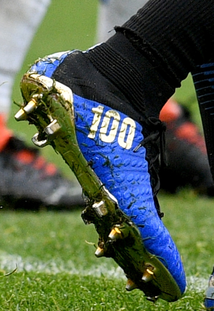 Mauro Icardi scored his 100th Serie A goal in the first half against Sampdoria on Sunday. By half time he'd scored his 101st and 102nd. Icardi emerged for the second half wearing a bespoke Inter Milan-themed Nike Hypervenom 3 design to celebrate his landmark achievement, and duly scored his 103rd in them.