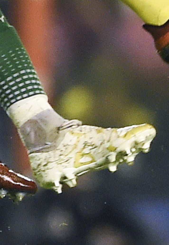 Dylan Gissi was wearing a custom colourway of the boot that kicked off the adidas Football revolution this week. The X 15.1 replaced the F50 line at the same time as the ACE replaced the Predator. Gissi has kept his custom design clean with a white and gold pairing.
