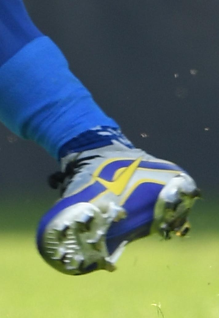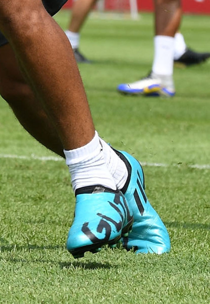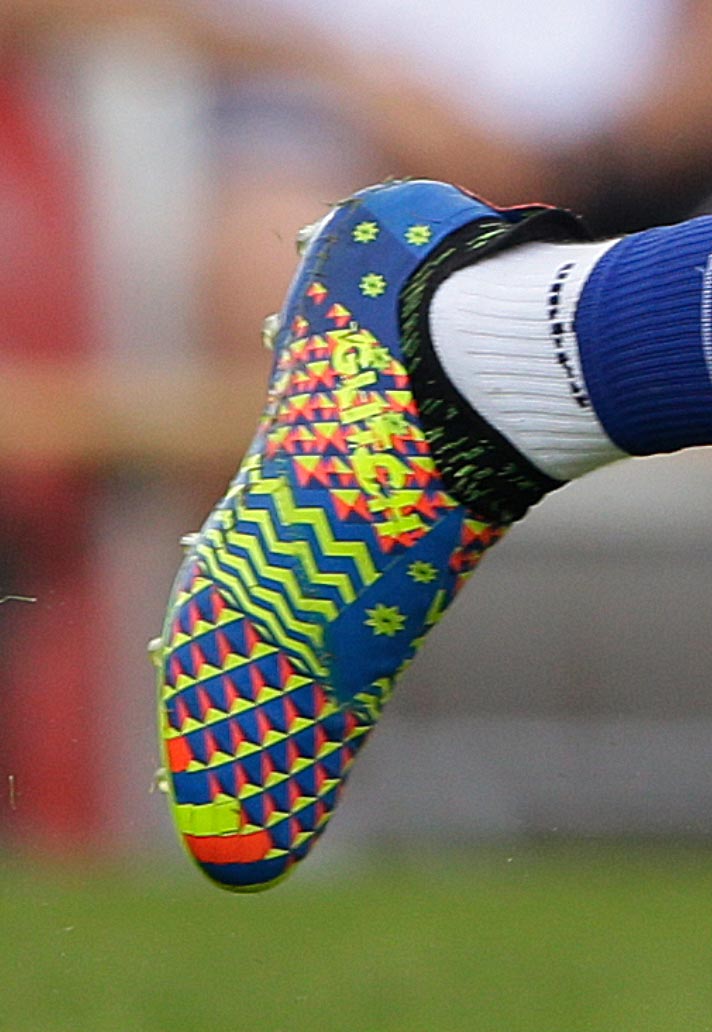 Another player in the adidas Glitch 18 this week was Arsenal's Reiss Nelson. Sporting an unreleased design with the word 'Glitch' plastered across the outside of the skin, it's a bold look in bright blue.