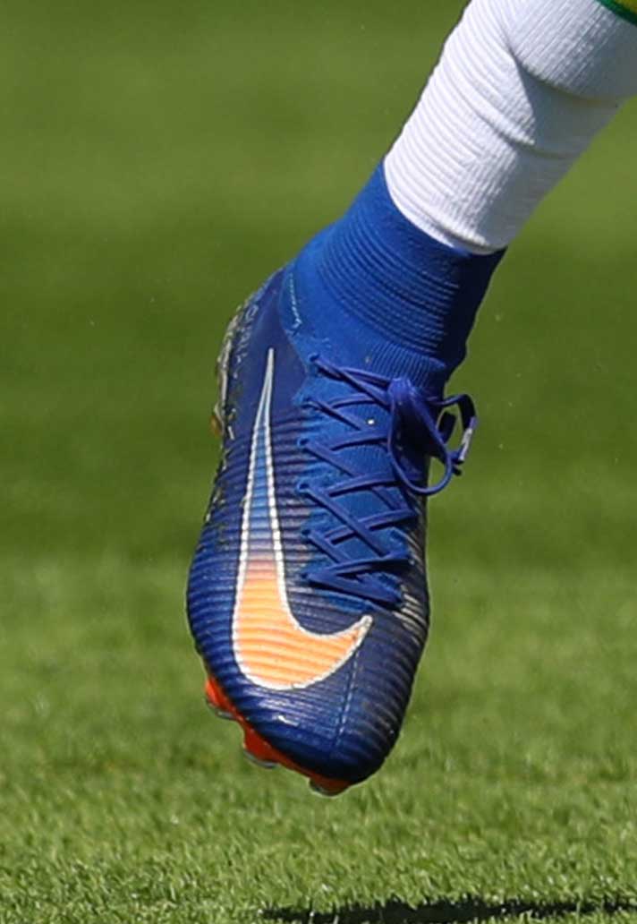 Brazil's Victoria switched into a design that marked the achievements of a fellow professional last week. The colourway worn here was released to mark Lieke Martens' incredible year of achievements in 2017. The signature 'Lieke' Mercurial Superfly V design featured the name of the Dutch star on the instep instead of the usual 'NIKE' branding.
