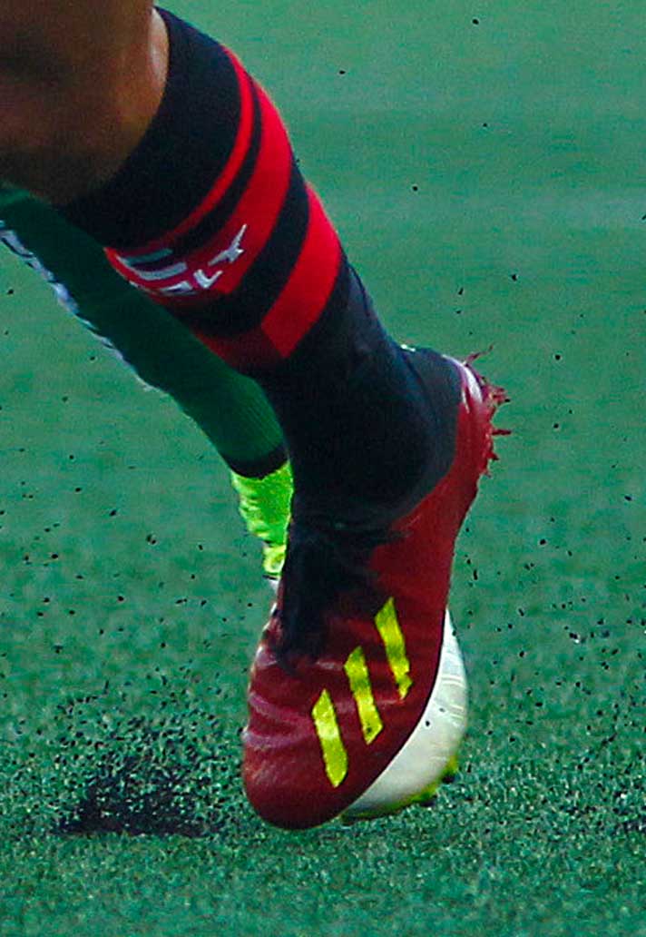 Regular readers of this series will know that Mexican side Tijuana have a club policy that encourages all of their player to wear red boots to match their home kit colours. This naturally leads to some smart custom designs, and some botched ones too. You can decide which category Luis Chavez's X 18.1 boots fall into.
