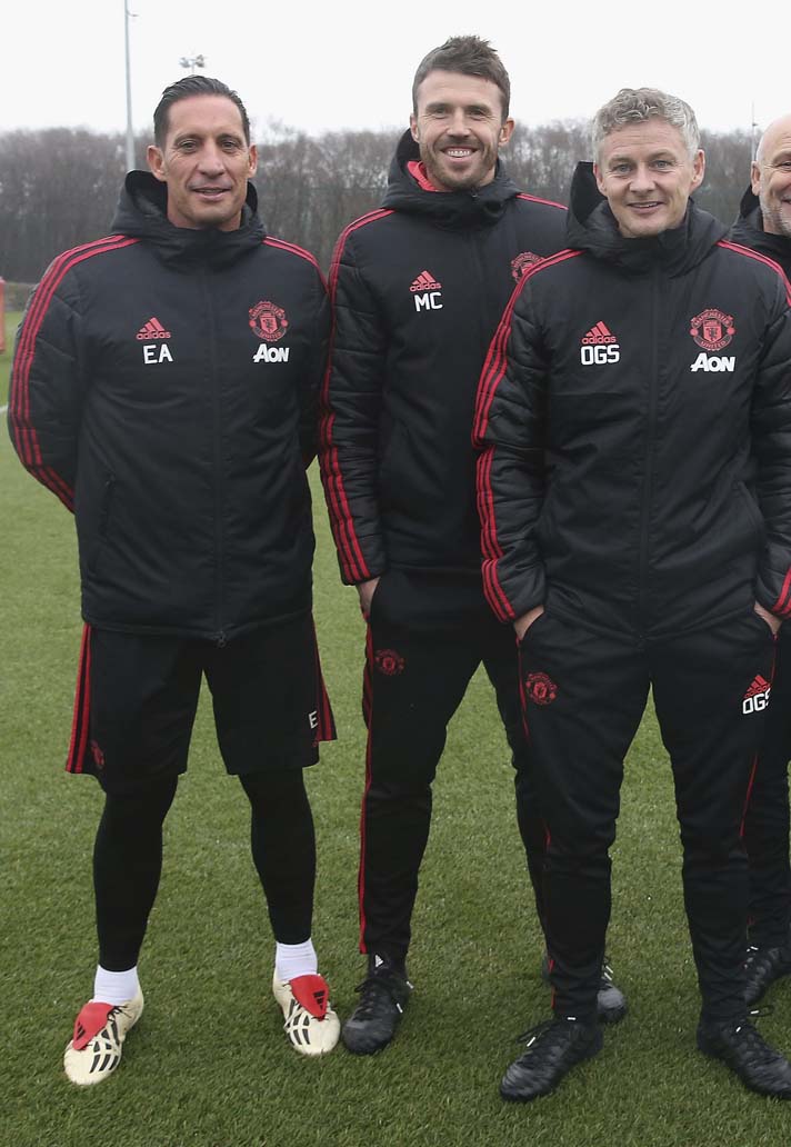 All of the Manchester United coaches lined up for a photo-call to welcome Ole Gunnar Solskjaer back to the club last week. Every coach was wearing blacked out boots apart from Emilio Alvarez who went all out in a pair of limited edition 2018 re-released adidas Predator Mania Champagnes. He has to be the set-piece man.