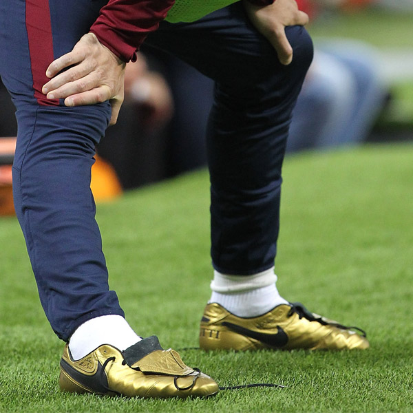 Francesco Totti has slipped into his exclusive and signature Nike Tiempo Totti X Roma football boot to train ahead of the Rome derby on Sunday against Lazio. Just 2500 pairs of the golden limited edition boots have were released and there's no prizes for guessing which pair the Italian legend has bagged for himself.