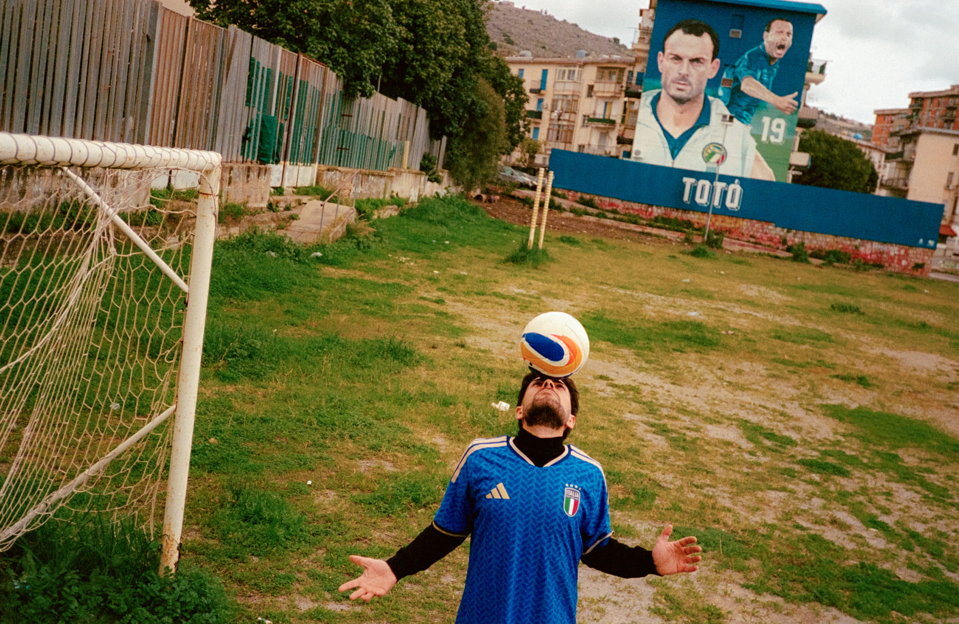“This work stems from following football where, in Palermo, it continues to exist in its truest form: in the street. The shots traverse improvised pitches and symbolic places of the city, from the mural of San Benedetto il Moro in the Ballarò district to the pitch of Zen 2, from the alleys of Vucciria to the mural dedicated to Totò Schillaci.”