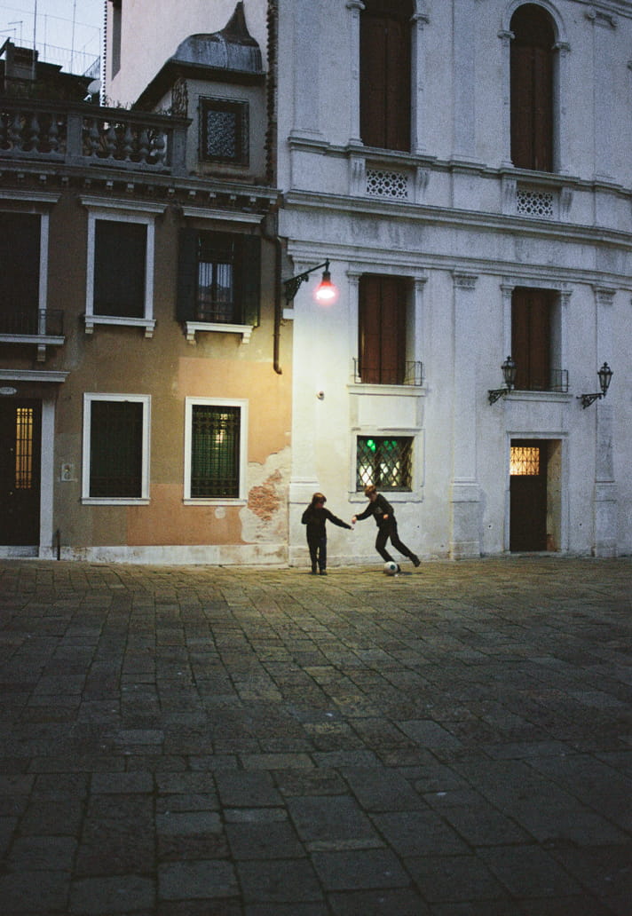 “The photos were taken between the Venetian 'patronati' (community centres) and the few fields where it's still allowed to play football like in the old days. Very few residents remain in Venice, but they are still able to carve out a small space amidst the incessant flows of an increasingly crowded city. And so, after the school bell rings, the kids gather in the 'campielli' (small squares), transforming them for a few hours into improvised playing fields.”