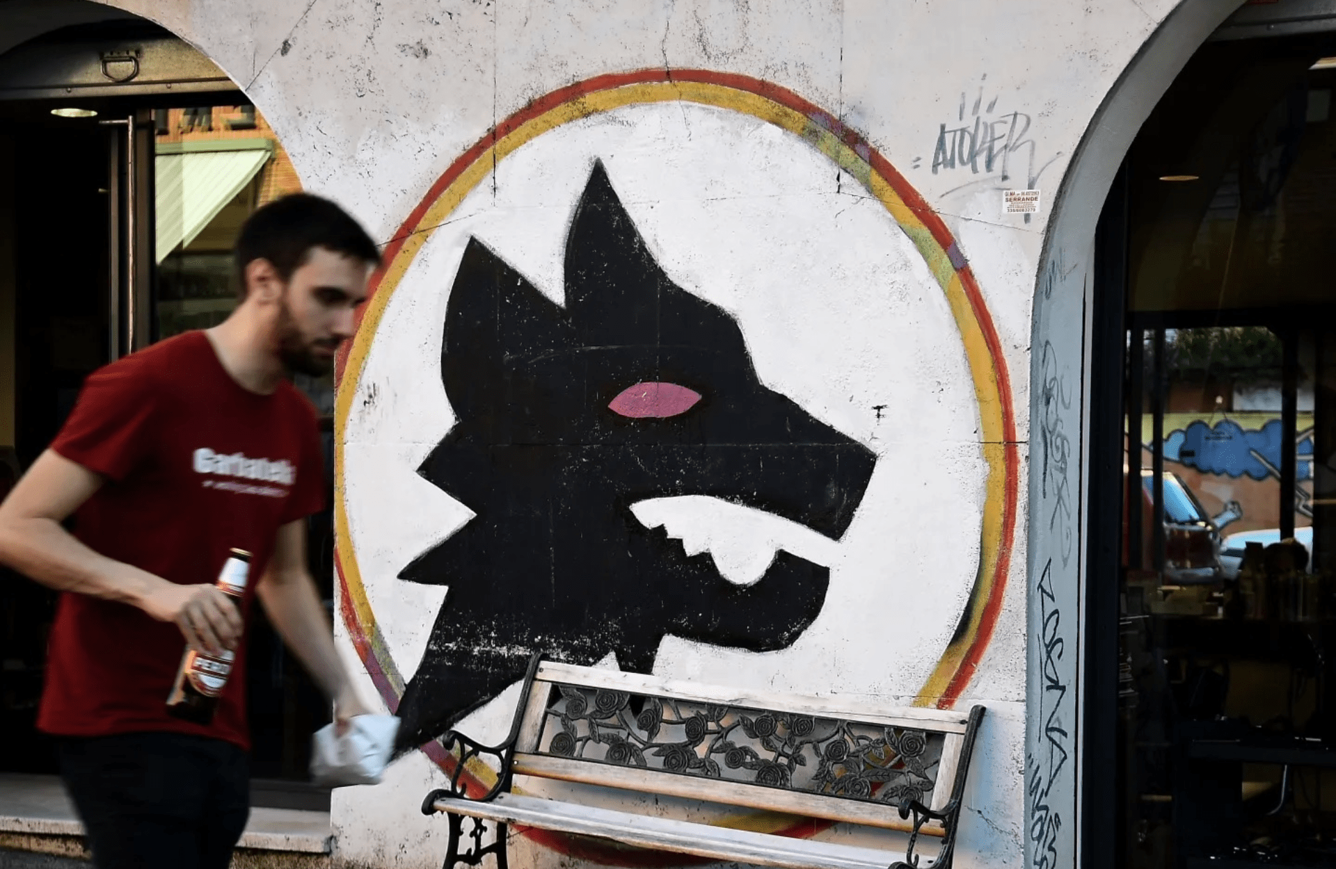 A simple wolf’s head, stripped back, bold, elegant. Black form, red eye, yellow-red border. The Lupetto — “little wolf” — was modern minimalism before the term had entered the mainstream. It arrived as the official logo of the Giallorossi under president Gaetano Anzalone, replacing the untrademarkable Capitoline Wolf that had long adorned the club crest. Gratton, born in Milan but raised with Roma in his heart, designed it not as a rejection of tradition, but as an evolution of it. And in doing so, he authored one of the most significant creative statements football has ever seen.