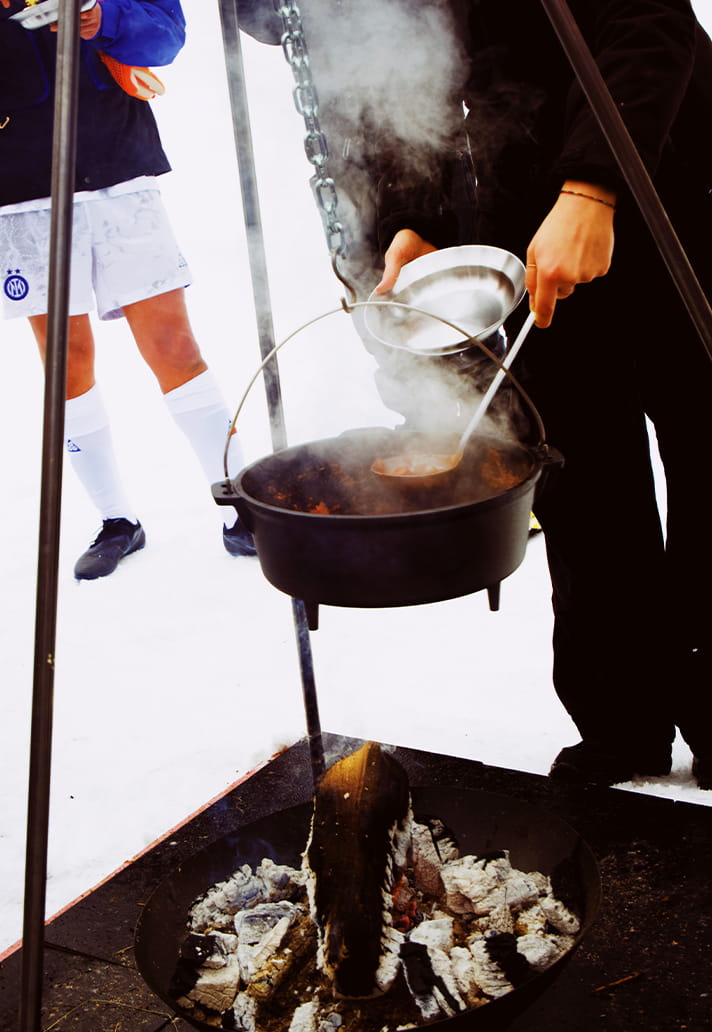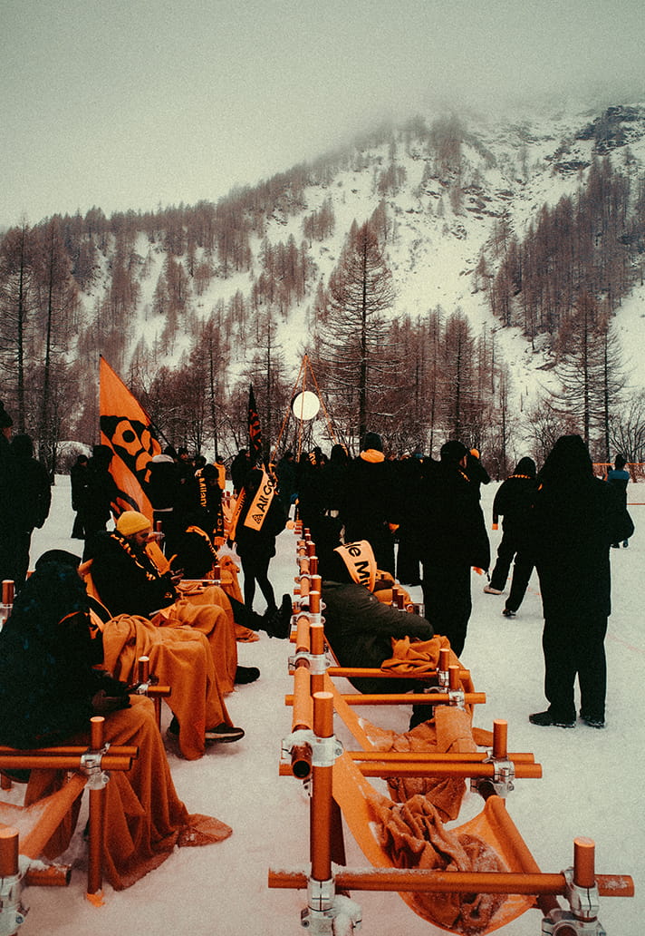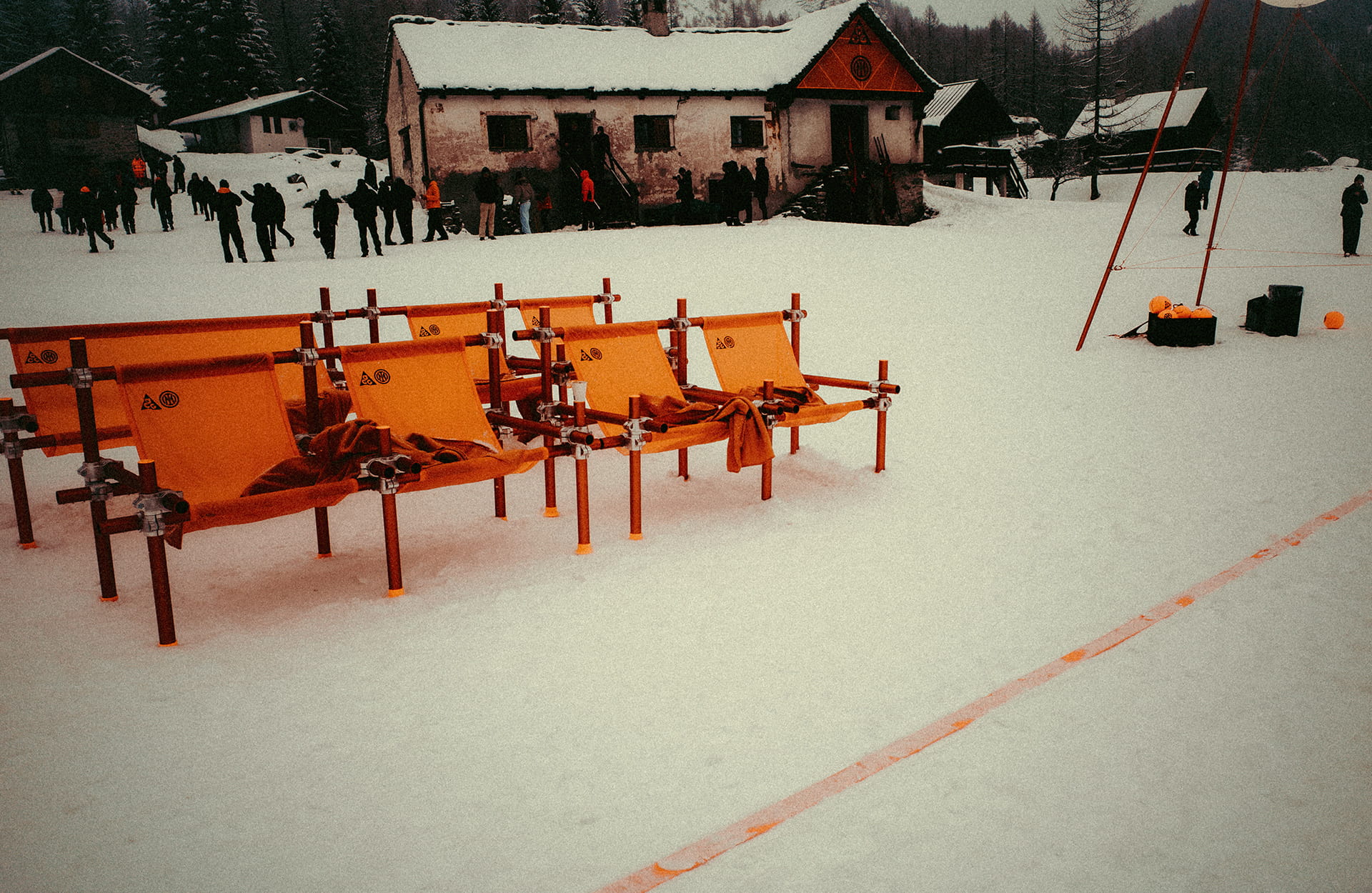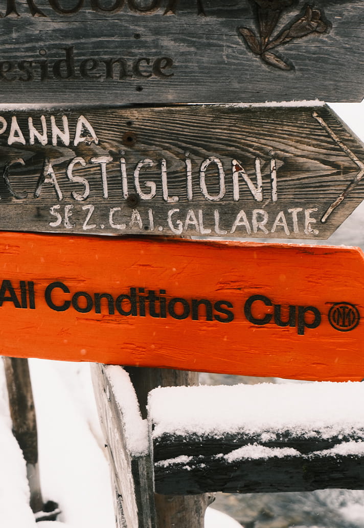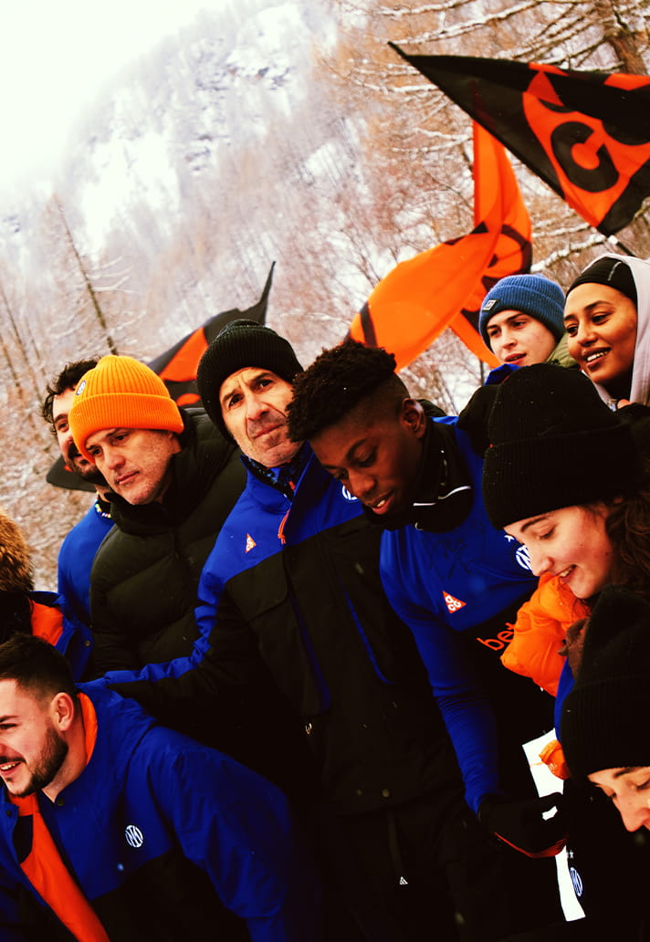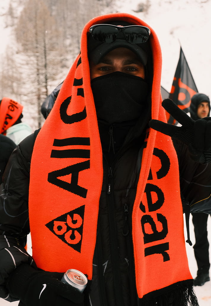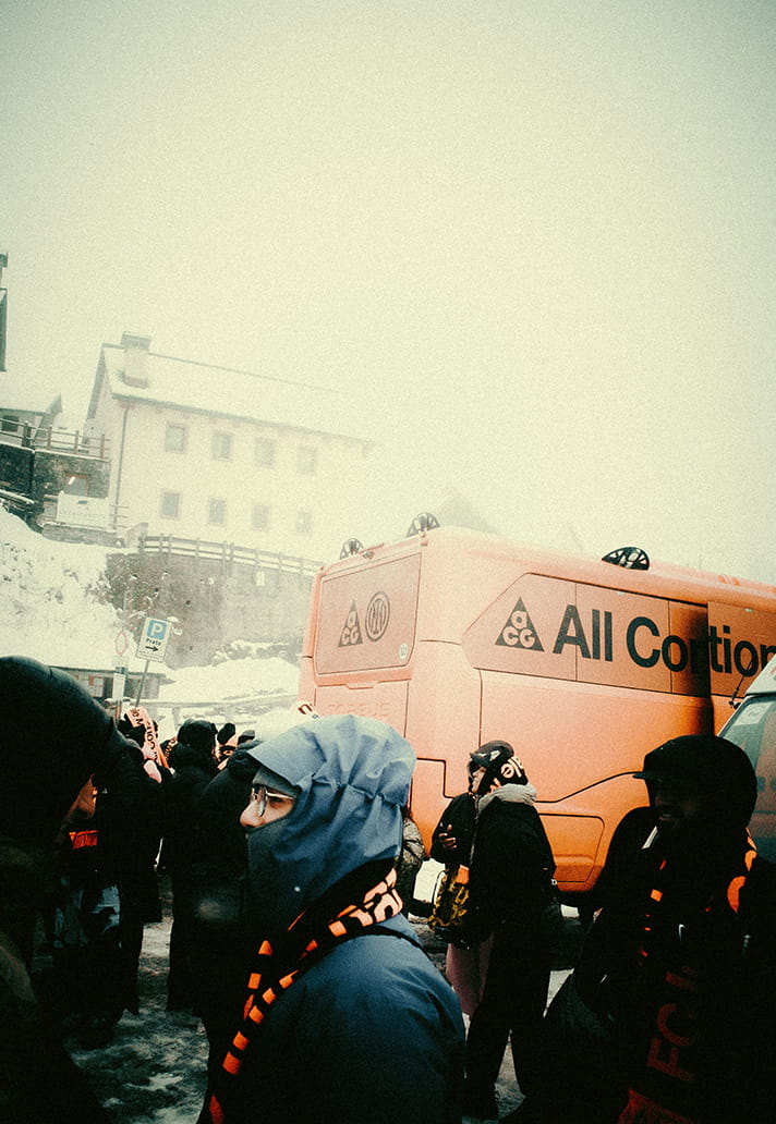 Then there was all the branding. Perfection. Marty Supreme may claim the colour orange but Nike ACG x Inter were giving them a run for their money. Orange pops against pristine white snow. So good. Inter x ACG logos all over custom merch. Even better. A full takeover of the outdoors. Done right.