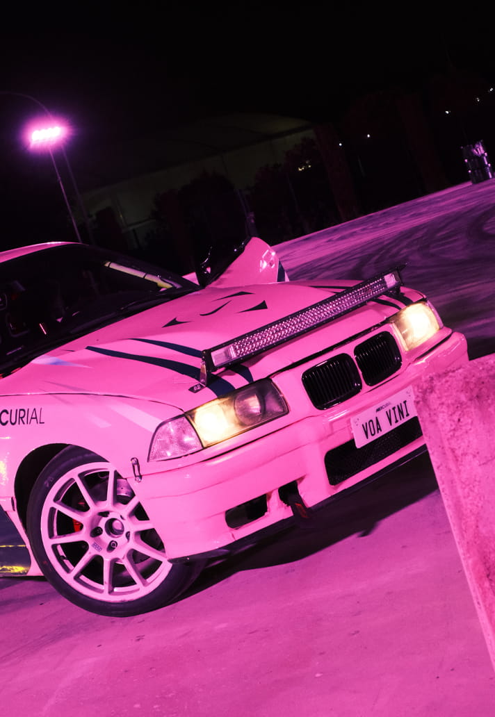 But onto the event. Hidden in the shadows of Madrid's concrete outer layer lay an underworld the city was never meant to see. The venue looked more like an underground car meet somewhere between Shibuya and São Gonçalo than a product launch. Black walls. Pink haze. Neon lights slicing through the darkness of the Madrid night. Everything bathed in the same colour palette as the boot itself and replicating its electric personality.