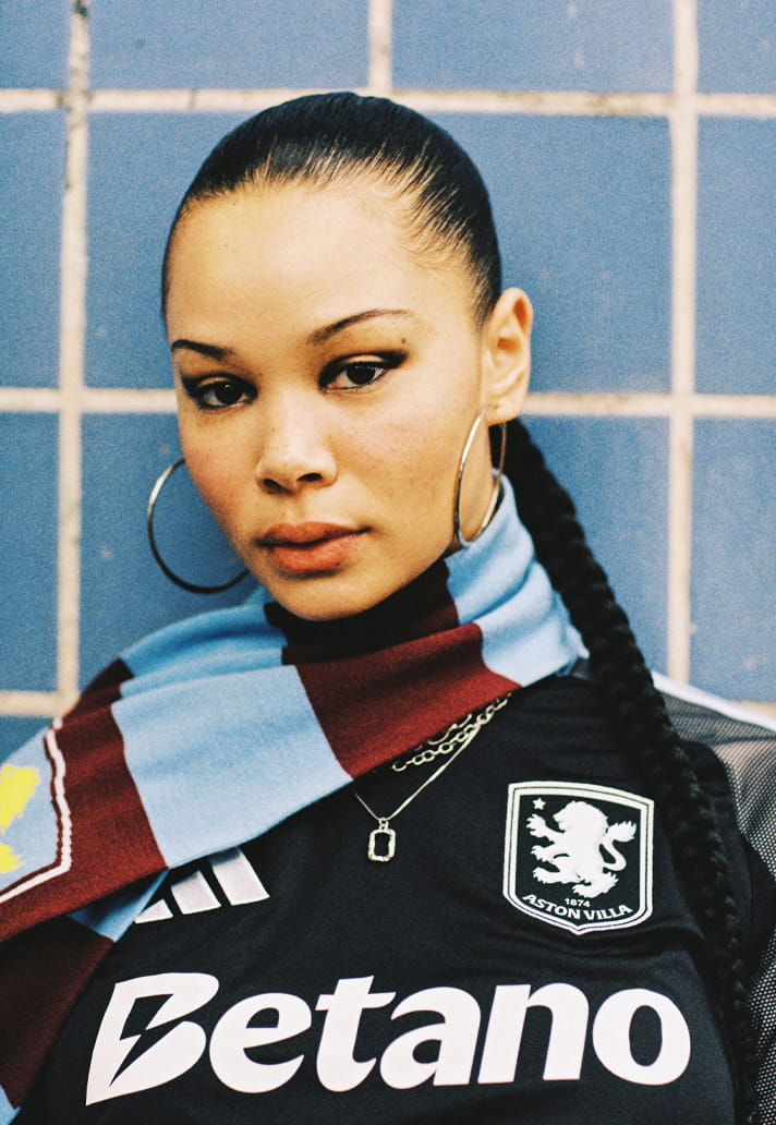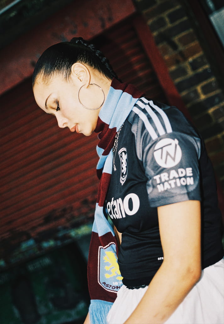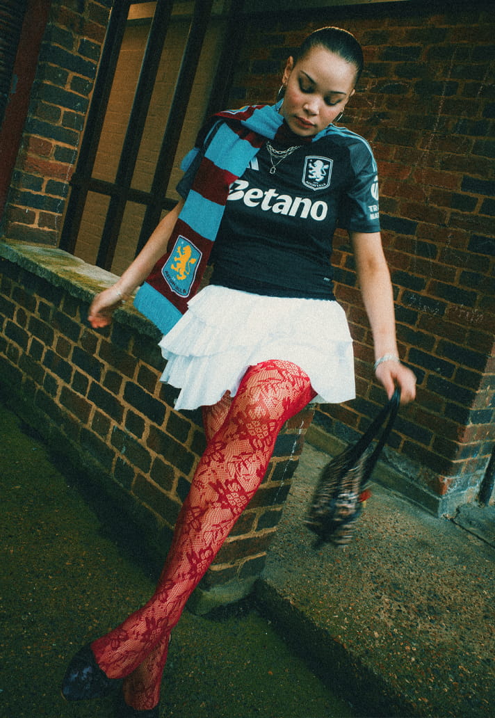 Because in a cultural context, off pitch, under different light, styled with intent, a sponsor has to feel as deliberate as the garment itself. Here, it reads almost like a piece of graphic design. A typographic anchor sitting at the centre of a controlled composition.