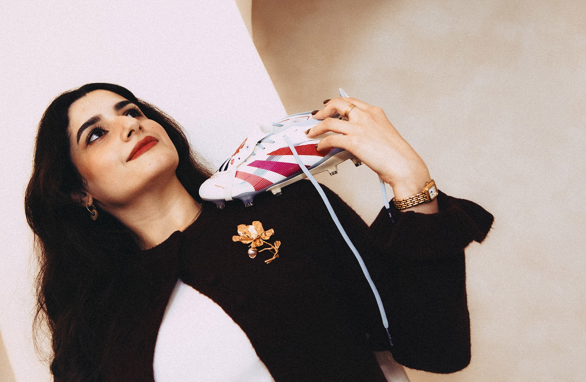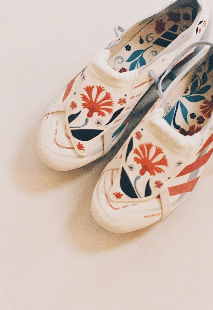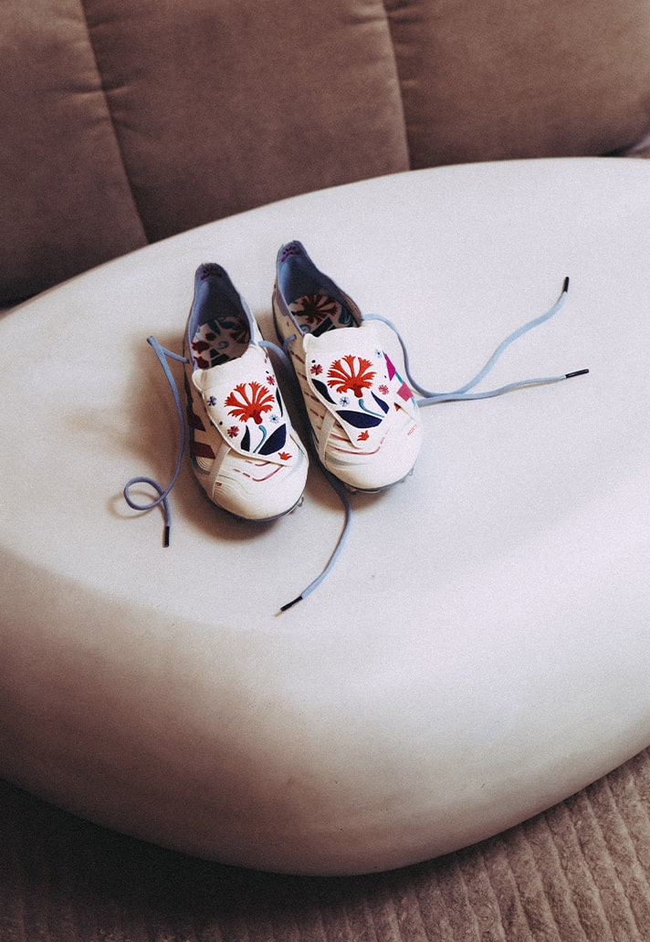 Now, that same storytelling sits on football’s most iconic canvas: the adidas Predator. For her, this collaboration isn’t just a design project; it’s a full-circle moment — from discovering football through a TV screen during the war in Iraq to redefining one of the sport’s most storied silhouettes.