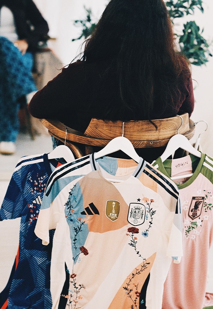 I approached it like a research project. I gathered visual references around Spain - architecture, patterns, traditional embroidery, nature—and built huge mood boards. Then came colour palettes, swatches, and sketches. I digitised the patterns, tested different stitches and densities, then travelled to adidas HQ in Herzogenaurach to review samples.