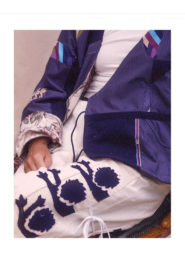 For Clinton, this collaboration was an opportunity to channel her energy, imagination, and personal roots through a new medium. “Creating this piece with Slow Projects was a really special experience,” she says. “I wanted it to reflect my creativity & flare on the pitch, aligning with comfort. Wearability was a big factor for me. I feel like the piece is slightly out of my comfort zone in my day-to-day apparel, but once I wore it, I felt confident & at ease.”