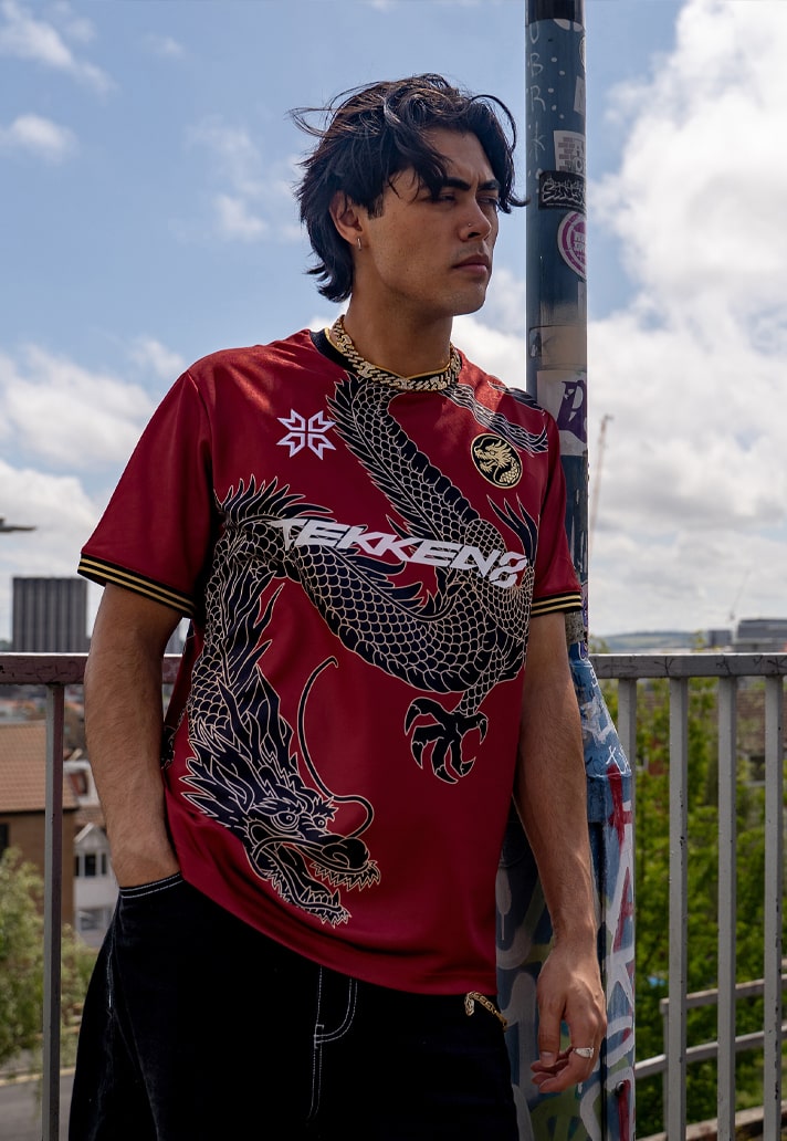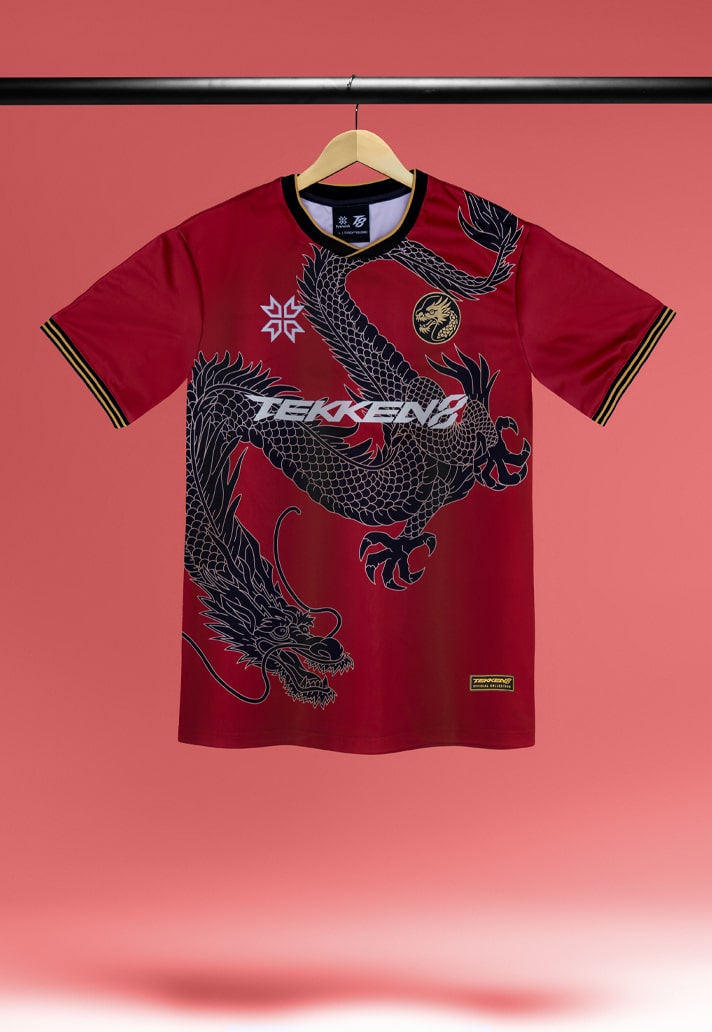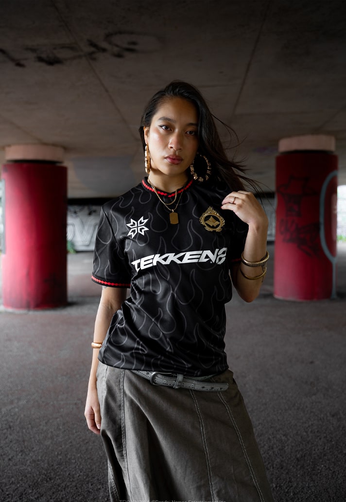 The collection takes the silhouettes and cut of performance shirts, but laces them with references from TEKKEN’s 30-year legacy. Character details, signature motifs, and embroidered crests double as battle emblems – a show of allegiance to your fighter of choice.