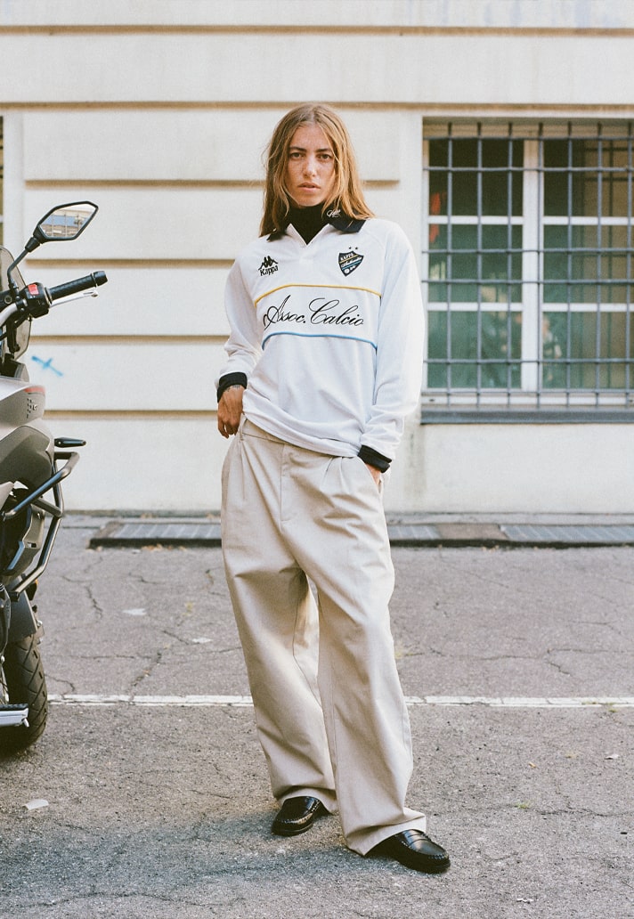 No Kappa collection is complete without the legendary “Banda” — and here, it’s front and centre. The repeating Omini logo motif runs down a tracksuit and football shirt that pay homage to the brand’s golden era in the 1990s. It’s nostalgia, but not as you know it — updated silhouettes and premium fabrics bring the past into the now.