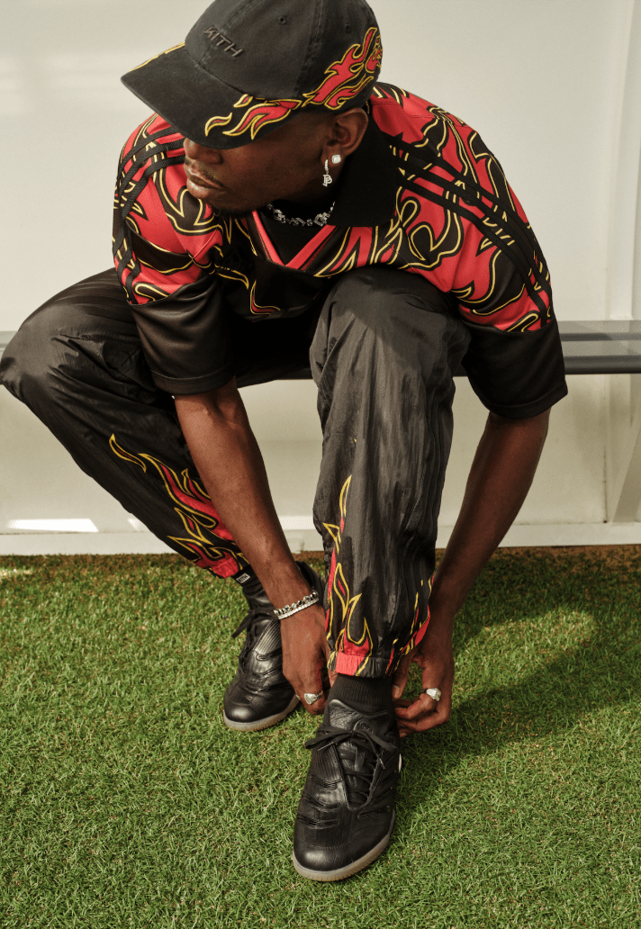 This latest instalment sees Kith and adidas explore deeper cuts, introducing denim into the football-meets-fashion conversation while reworking iconic silhouettes with a contemporary energy. Jerseys lead the line, arriving with flame artwork that nods back to the 1998 World Cup, pinstripes laced with co-branded embroidery, and jacquard colour-blocking, all completed with that ever-recognisable Three Stripe taping. Matching shorts and track-inspired outerwear extend the pitch-ready aesthetic into everyday territory.