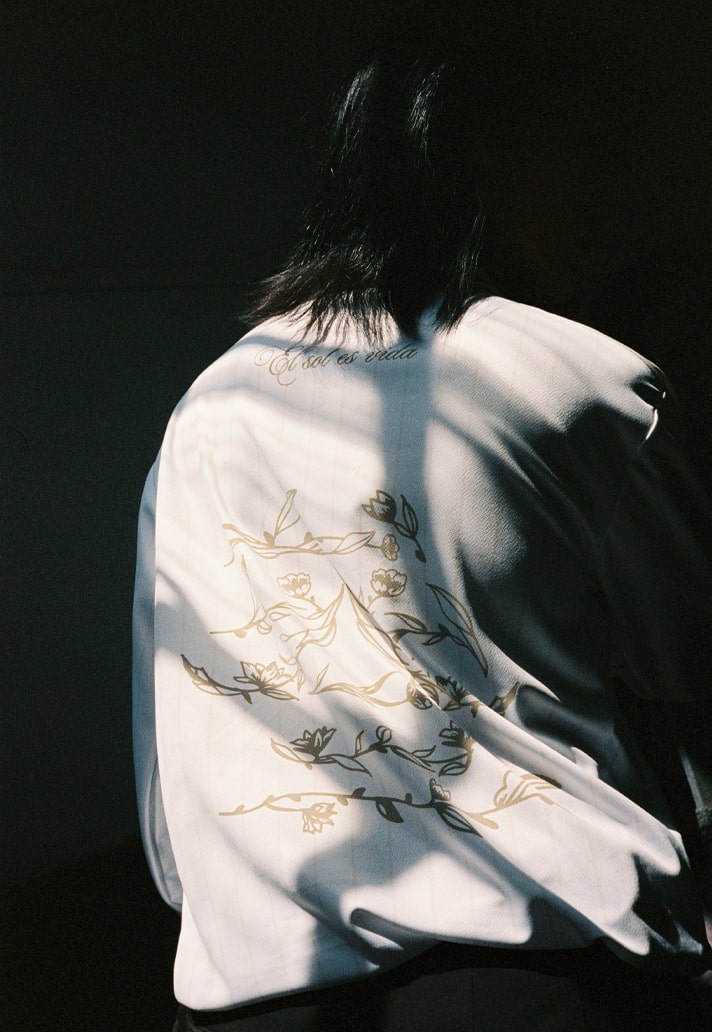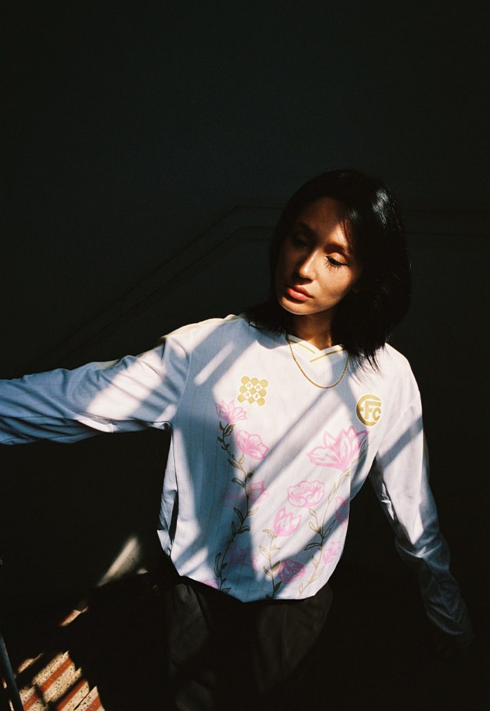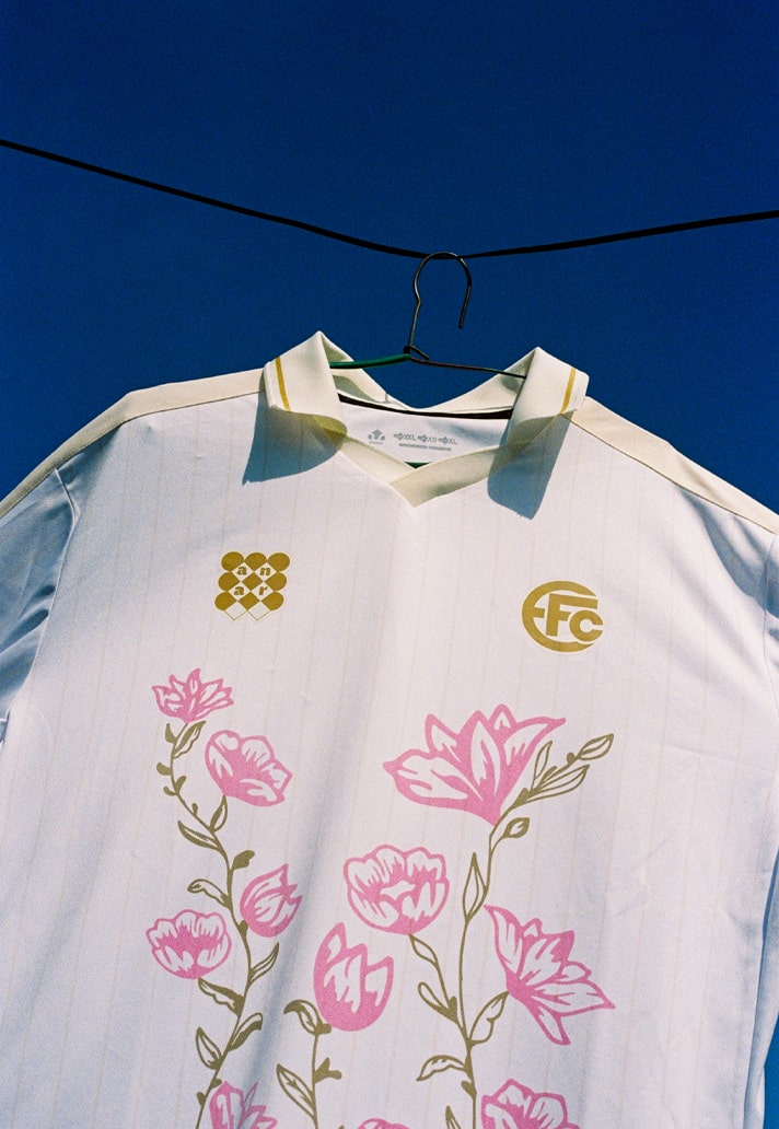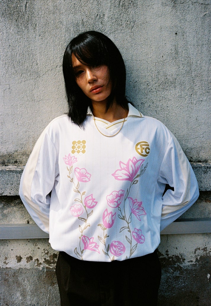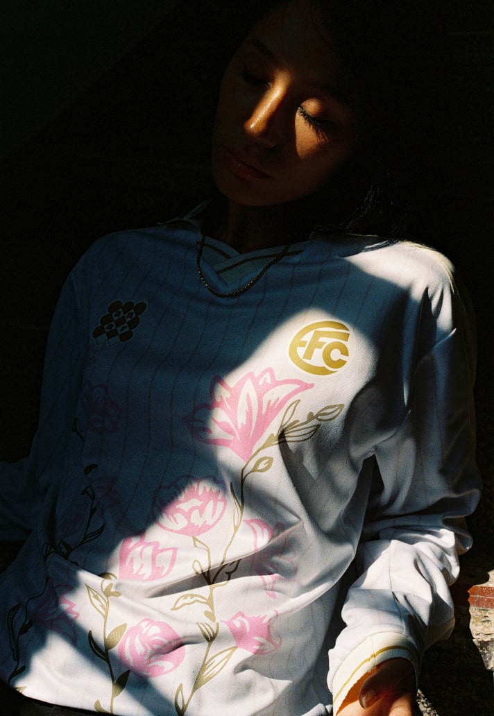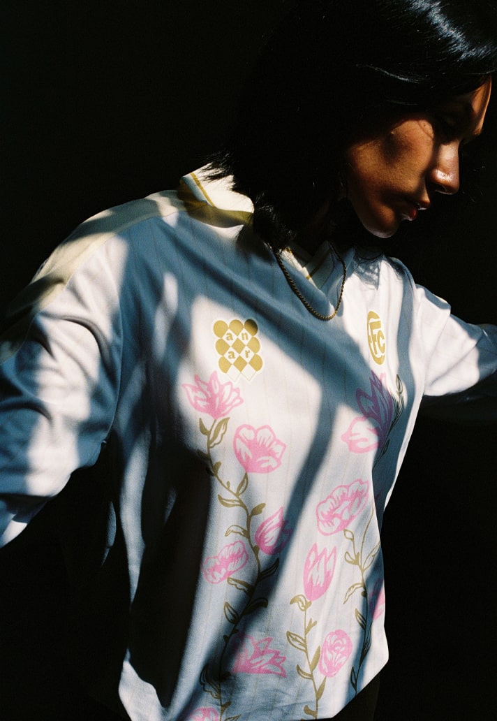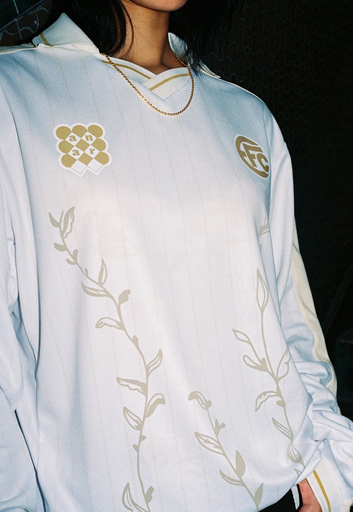 At first glance, the long-sleeve 'EL SOL EES VIDA' jersey from Equipo FC and Anar FC keeps things refined — golden leaves cascade across the front in an elegant print. But step into the sunlight, and the magic happens. Invisible ink technology reveals a transformation: the leaves blossom into vivid flowers, with a red pomegranate flower emerging as the centerpiece. It’s a subtle yet striking reveal that encapsulates the shared DNA of both brands — growth, creativity, and cultural fusion.