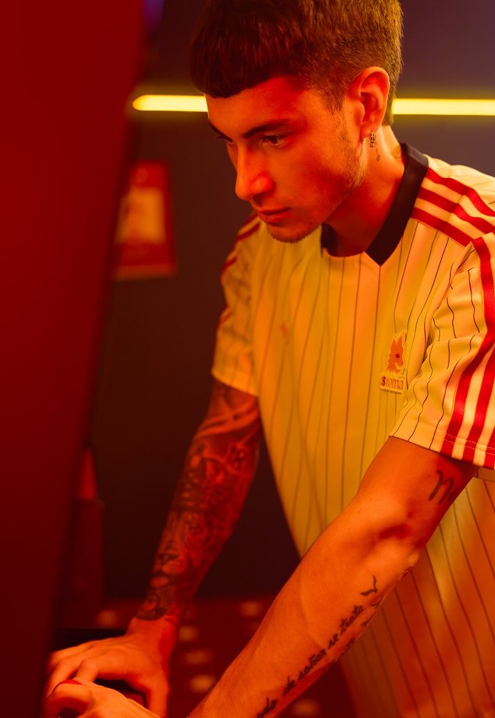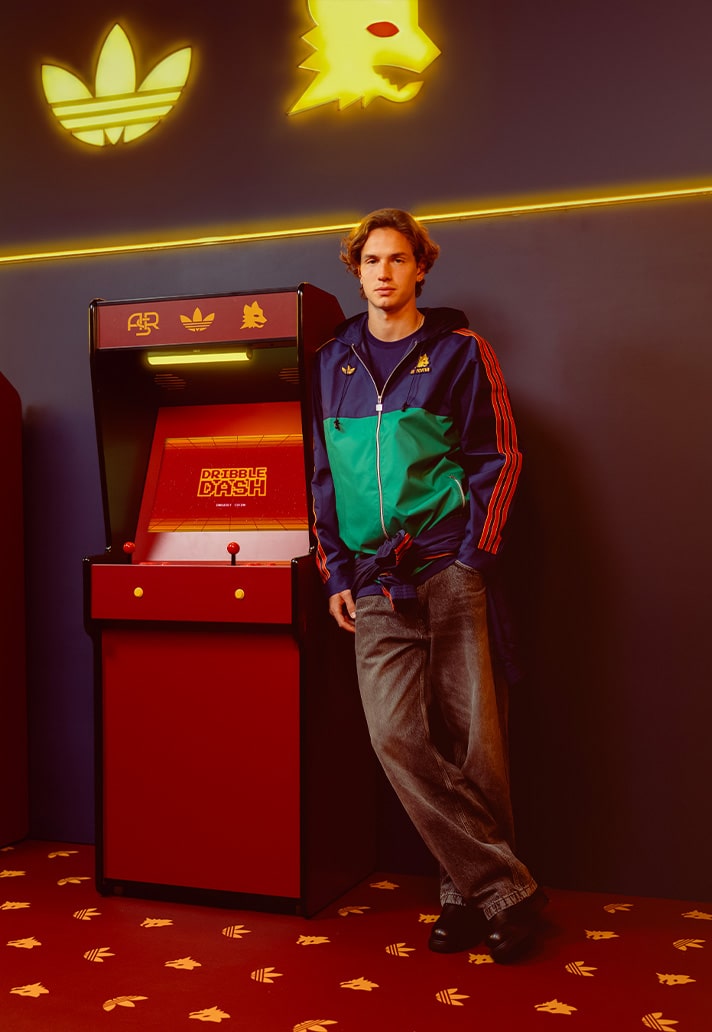 The campaign’s visuals bring the vibe to life in an arcade straight out of the 90s — neon lights, classic cabinets, and pixelated nostalgia setting the tone. Roma’s men’s and women’s players front the shoot, styled head-to-toe in the new gear. And because this drop doesn’t just nod to the past but plays with it, an 8-bit videogame featuring Roma players has been created to complete the immersion — available now to play for free on the AS Roma website.