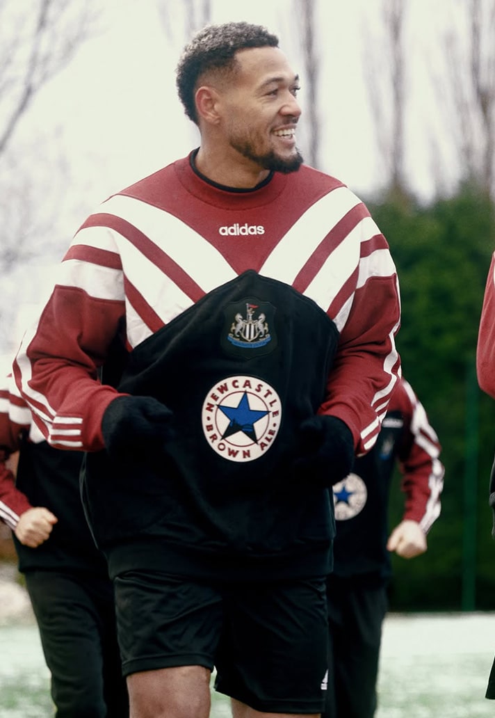 The vibe is unmistakeable. Loud designs, looser fits, and a tonne of swagger. The classic burgundy and navy tones of Newcastle make their return, blended with the timeless aesthetics of the Three Stripes. It’s the kind of collection that makes you want to get out that VHS camera from the basement.