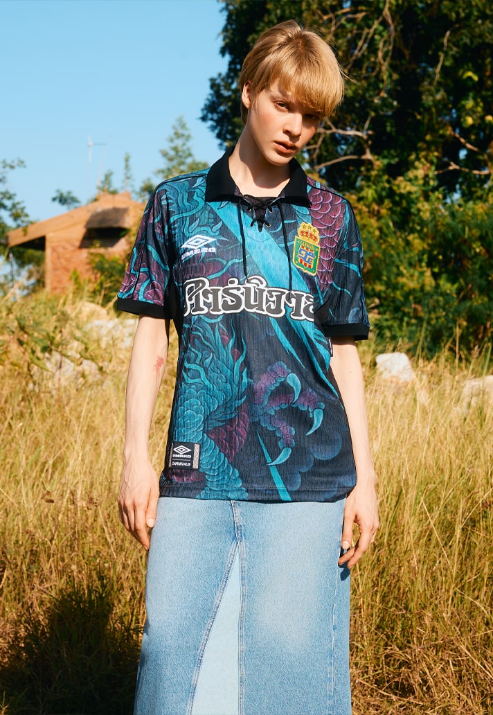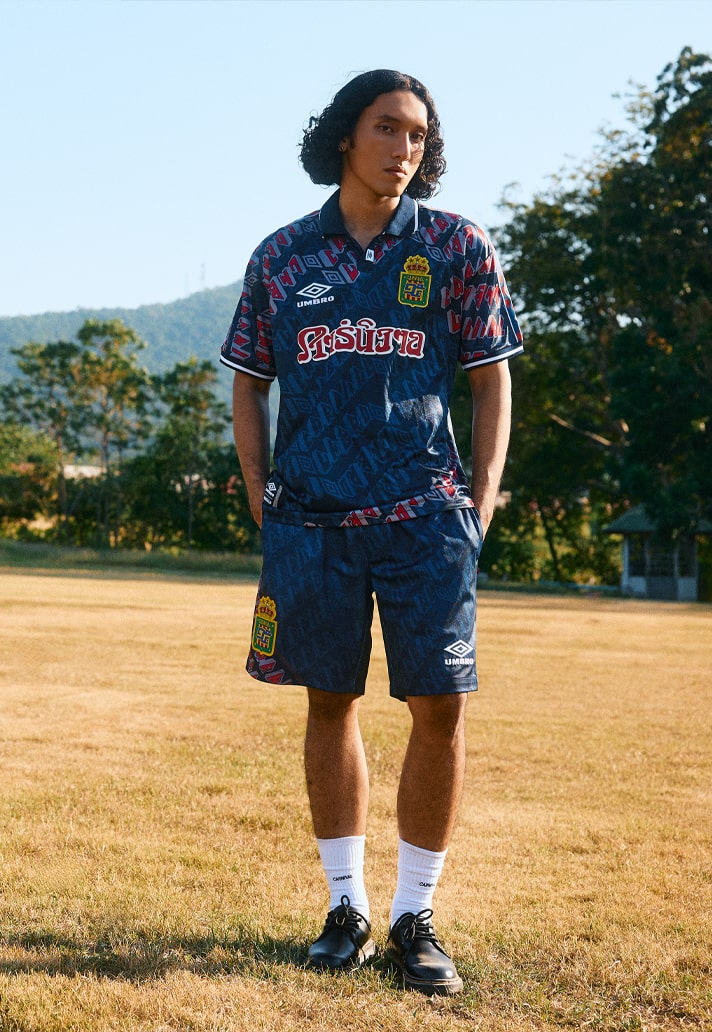 At the heart of the collection is a meeting of worlds. Umbro’s deep-rooted football DNA collides with CARNIVAL’s streetwise Thai sensibility, resulting in a capsule that’s both globally fluent and locally grounded. Drawing inspiration from traditional Thai art and culture, the designs weave together architectural motifs, national colours, textiles and typography, all layered over unmistakable football graphics. It’s big, bright and unapologetically brash — exactly as it should be.