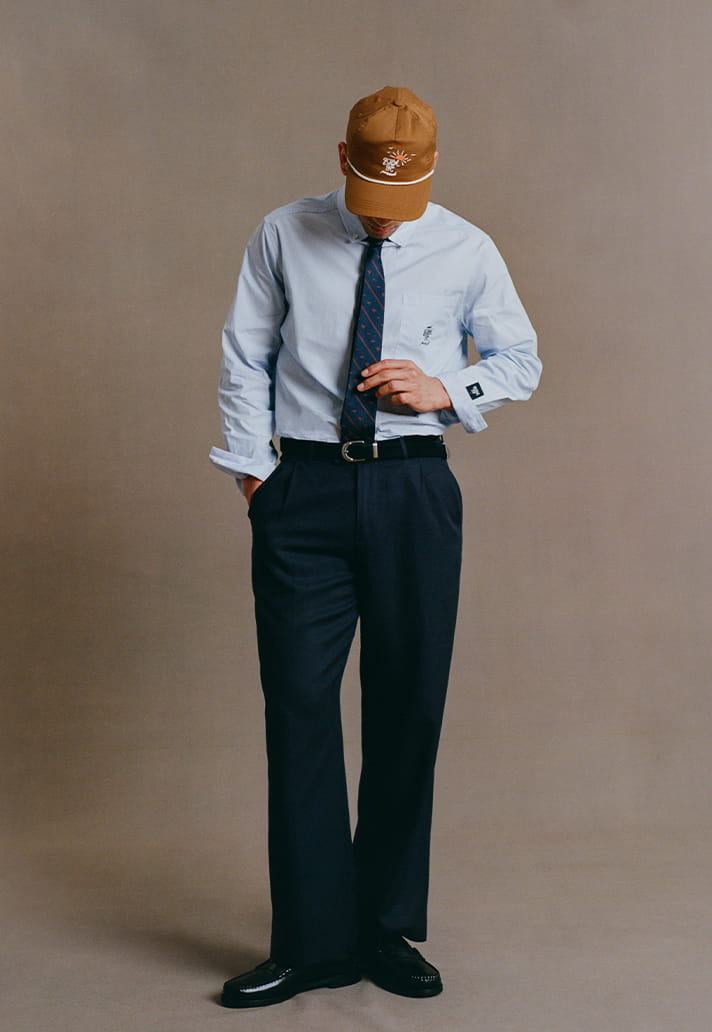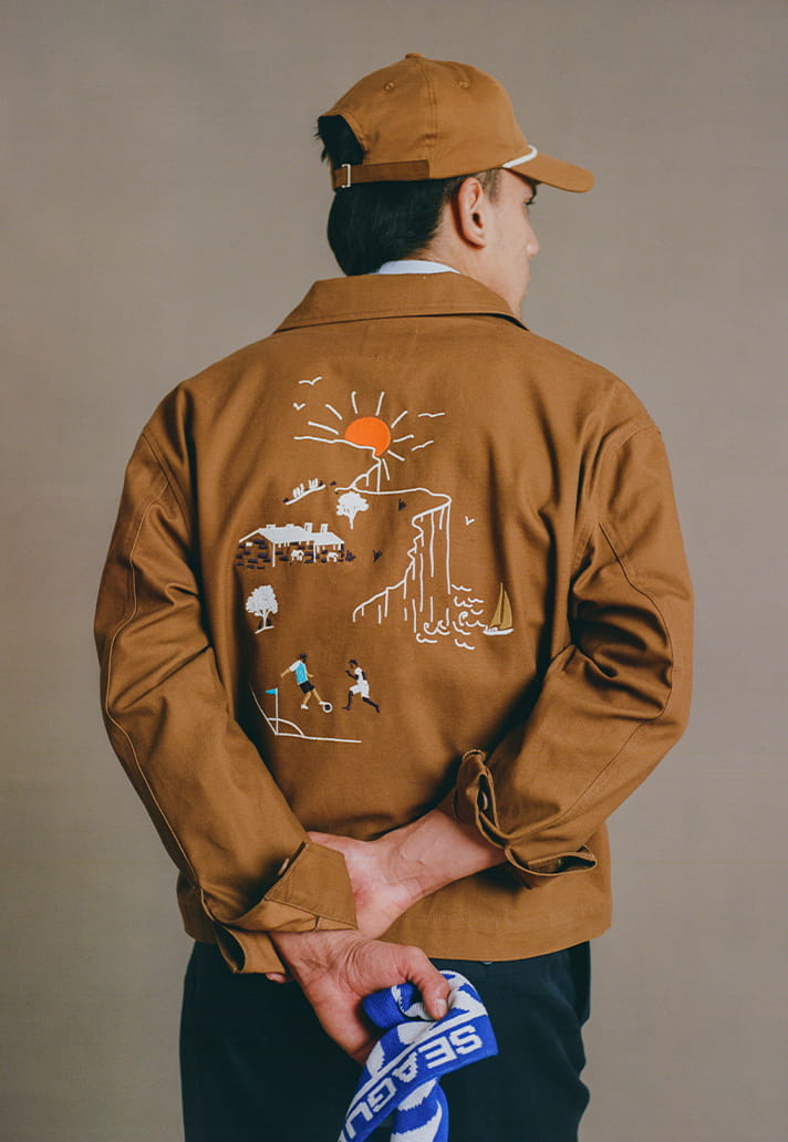 Then there's the accessories: there's silk ties, trucker caps and embroidered totes that nod to the South Downs in navy and rust tones. The detailing is the point, with vintage crests appearing in fine embroidery and local landscapes screen-printed quietly.