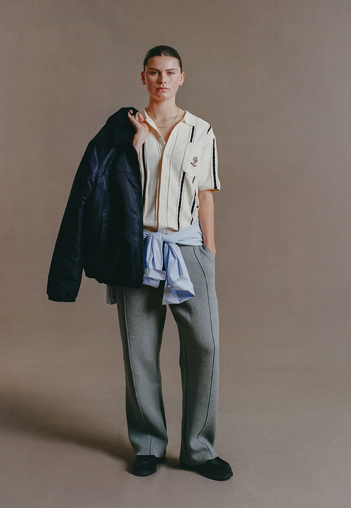 There’s a waterproof Greyson mac with a custom club-lined interior, a breezy linen jacket with collaborative labelling, canvas workshirts embroidered with the Sussex coastline and, because this is still Percival, a mohair cardigan.