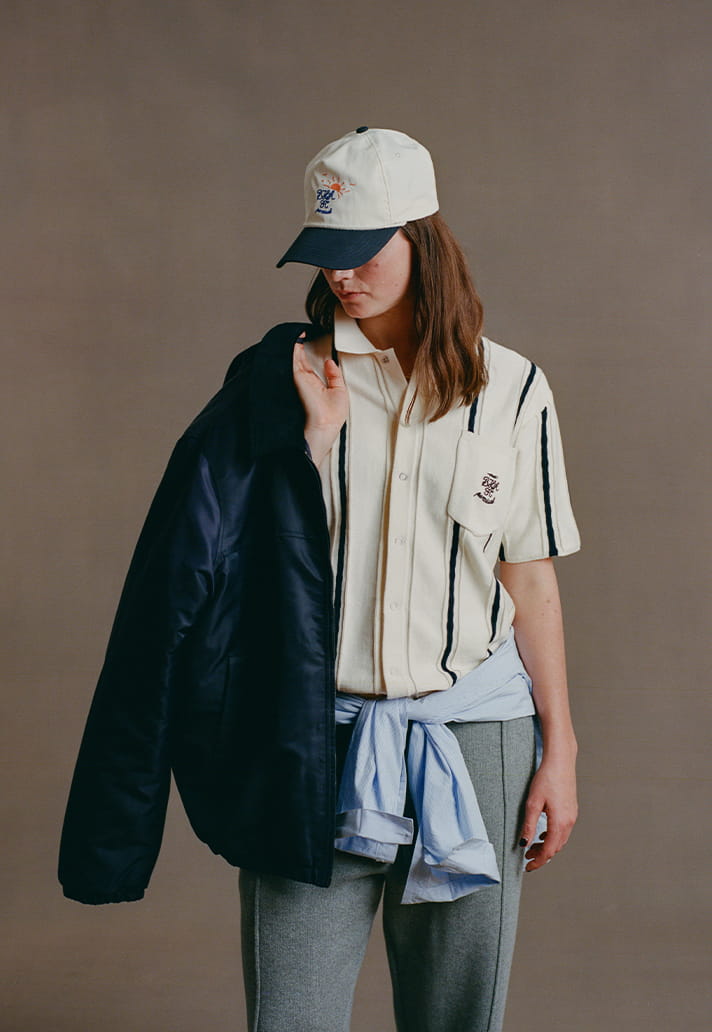 Rather than plastering crests across polyester, Percival has mined Brighton’s past properly. The original 1950s logo, vintage matchday programmes, Sussex travel posters and the club’s blue-and-white palette are reworked into pieces you’d actually choose on a Saturday morning.