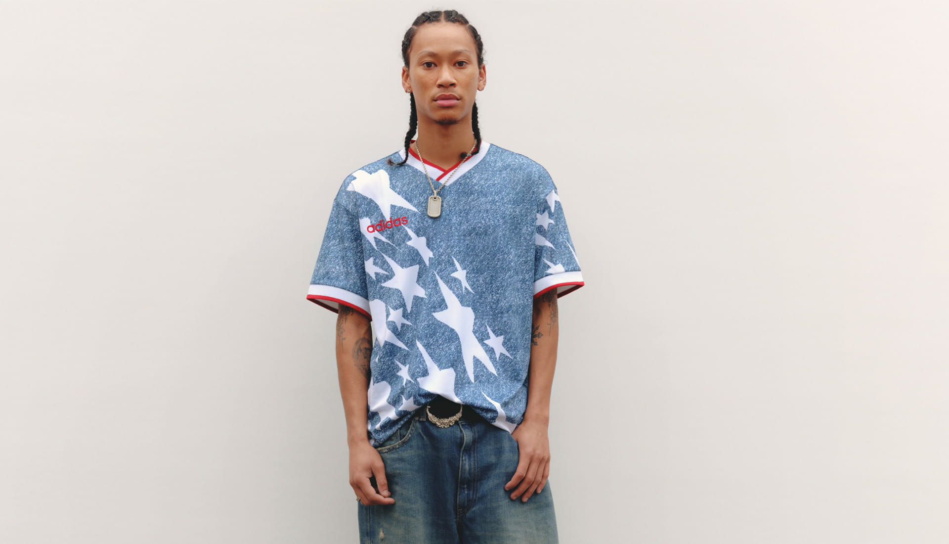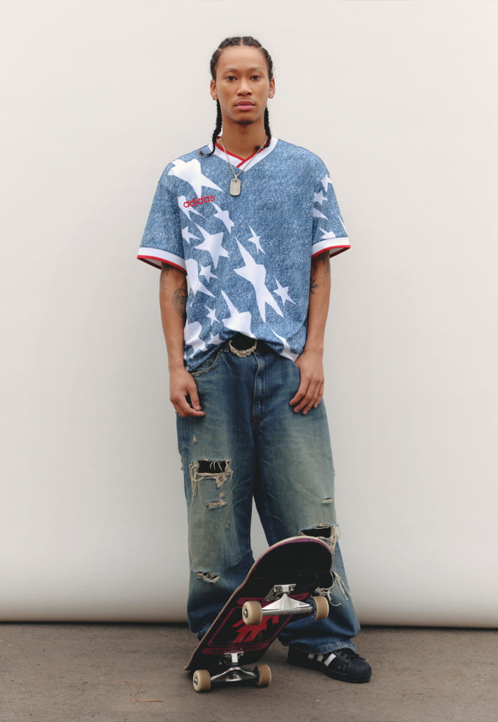 The jersey headlines a wider U.S. Denim Collection, building a complete capsule around the most beautifully chaotic kit in U.S. soccer history. The Denim Shorts mirror the shirt’s star‑covered print, creating a full match‑fit silhouette straight out of the ‘90s. The Denim Track Top brings contrast panelling, star graphics and hits of red at the collar and cuffs, blurring lines between retro warm‑up gear and modern‑day terracewear. Completing the drop is the Denim Cap, a cleaner, more subtle nod to the theme, finished with embroidered branding and miniature star details.
