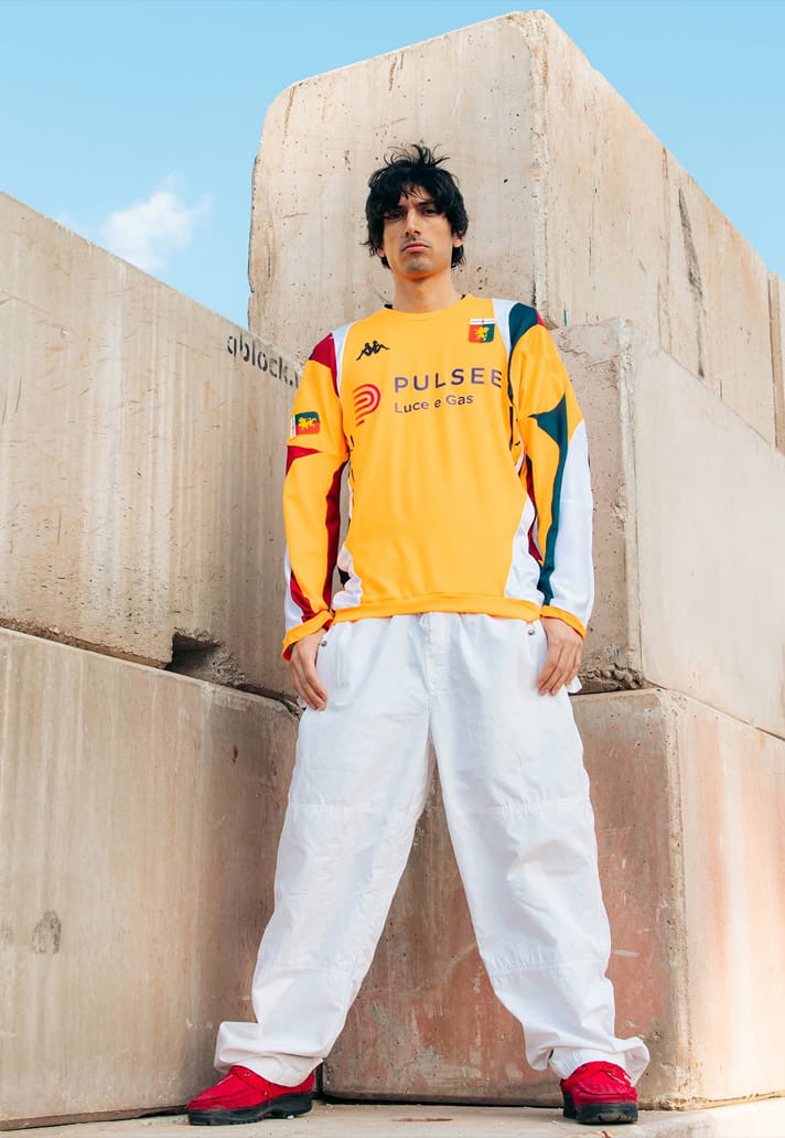 Kappa’s streetwear DNA, Genoa’s historic pulse, and Pulsee’s innovation mindset collide in this creative act of regeneration, with Milan, Genoa and Turin forming a triangle of Italian energy that anchors the capsule.