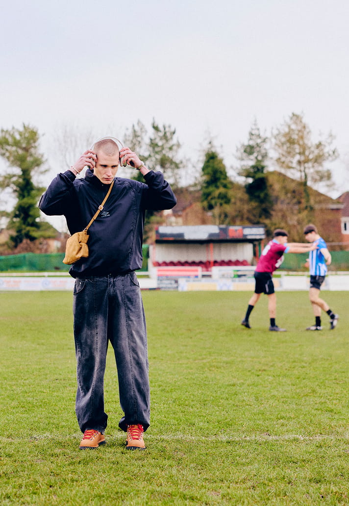 Harringtons shrugged on over kits. Drill tops pulled back out for the walk home. Track jackets with just the right amount of boxiness. It’s the understanding that football pieces have always been hybrid garments, equally at home on a terrace or in the bar afterwards.