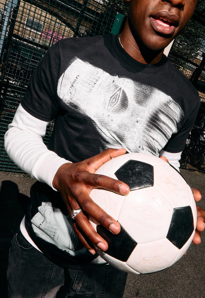 The collection is brought to life through a campaign anchored by a short film and lookbook, capturing the feeling of being there – not just for the football, but for the people you share it with. Shot in a stripped-back cage setting, the campaign shifts between portraits and unfiltered moments: laughter, clashes, conversations – the details that often go unseen. The film is threaded with a manifesto and voiceover centred on the idea of “Choose Number 1,” grounding the visuals in the deeper narrative behind the project