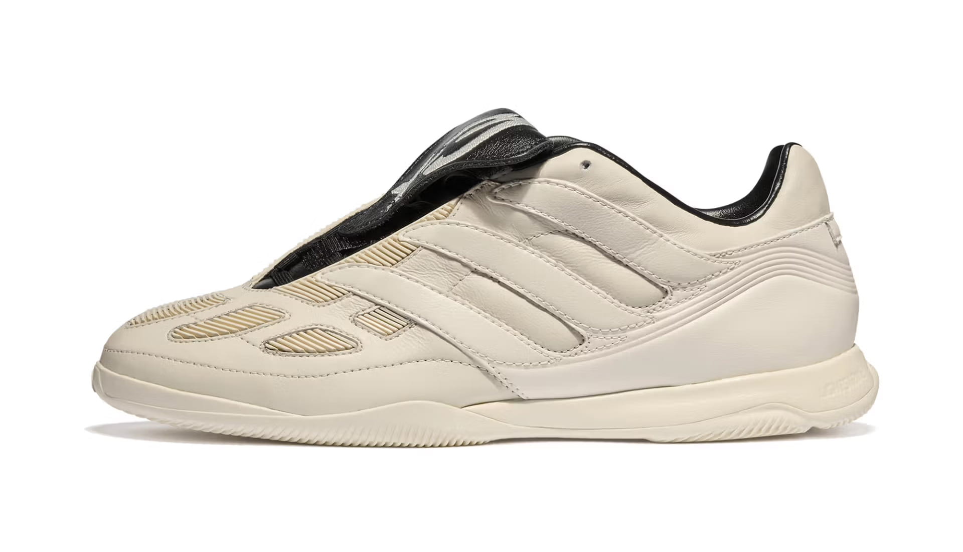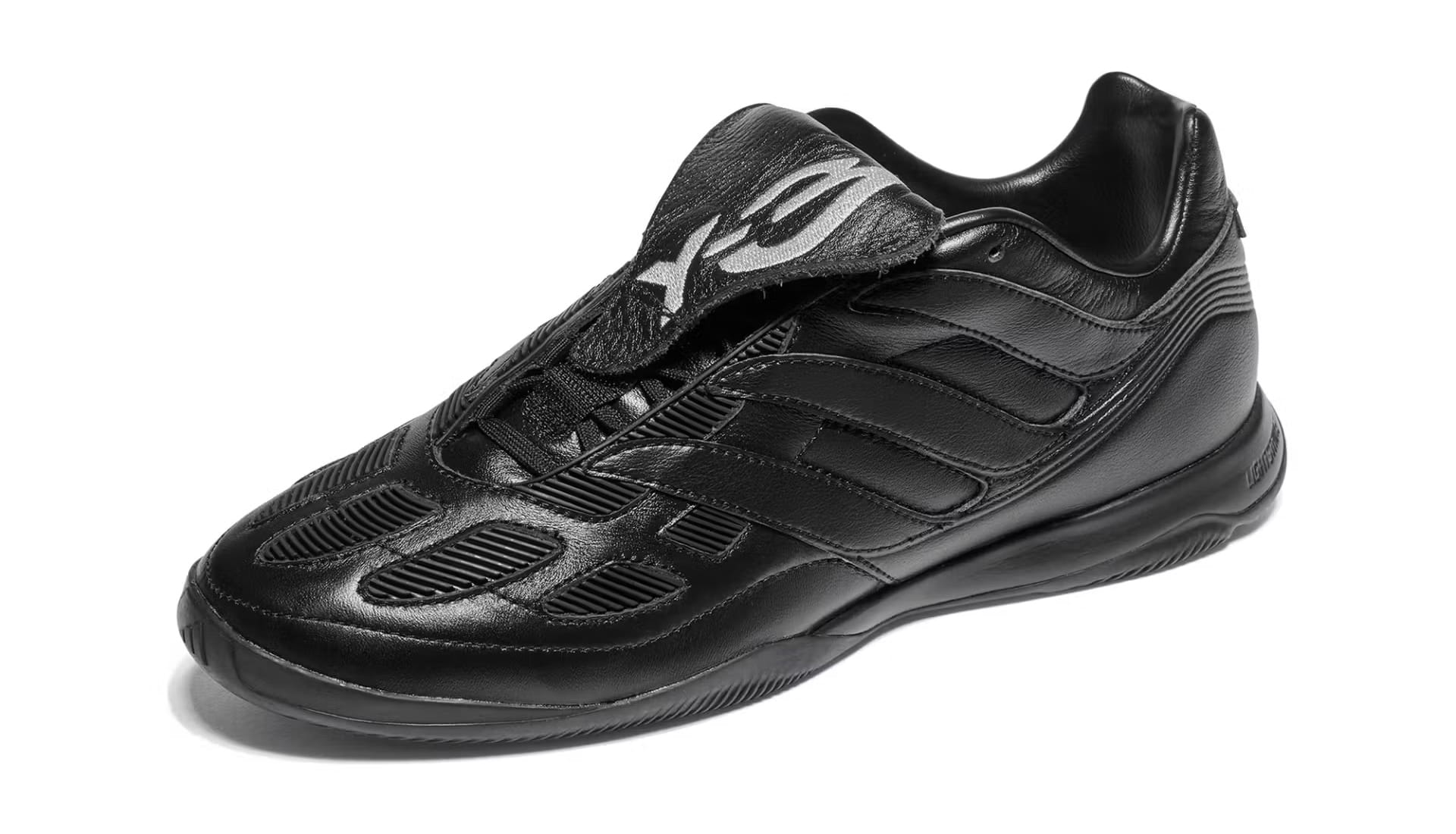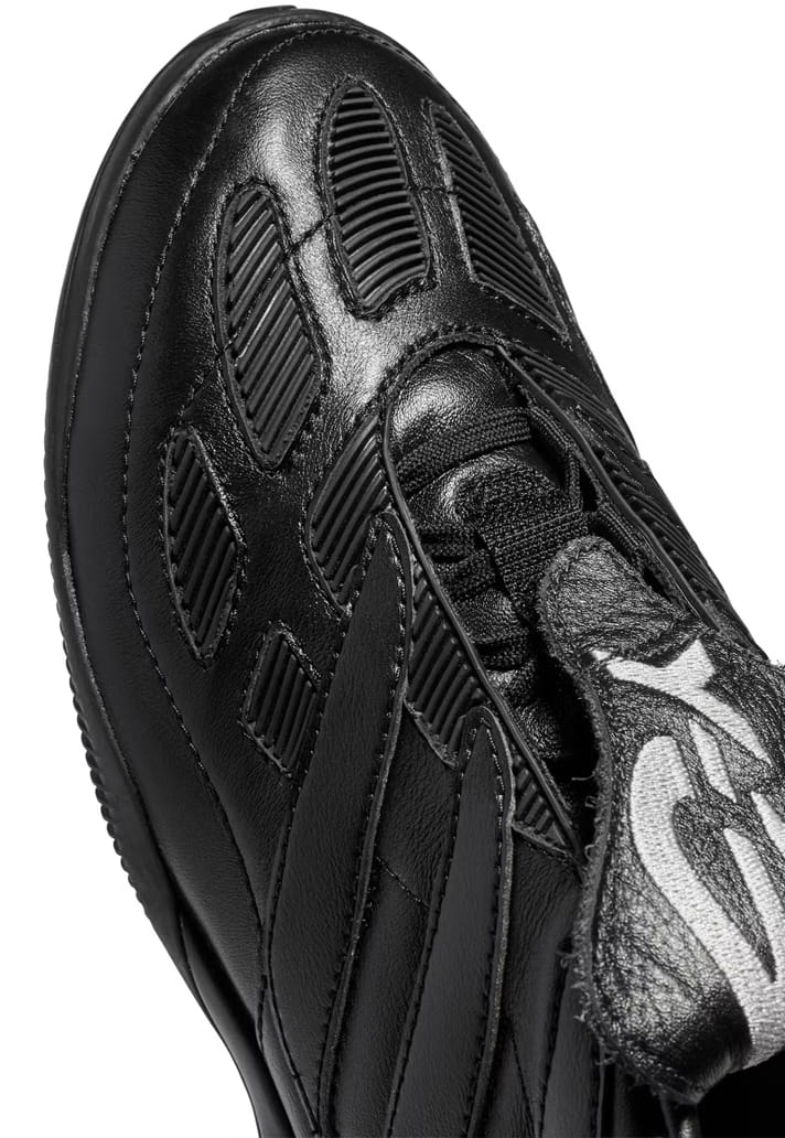 Two colourways define the pack. A full-black option puts the spotlight on the Predator’s sculptural build, letting the folded tongue and layered panelling do the heavy lifting. Alongside it sits a premium off-white pair, leaning into contrast through premium leather uppers and darker tongue detailing — a clear nod to the Y-3 Predator from 2024. Both retain the Precision’s signature DNA: exaggerated forefoot paneling, stitched strike zones and that unmistakable tongue. The difference lies in execution. Branding is kept deliberately low-key, allowing silhouette and construction to speak louder than logos ever could.