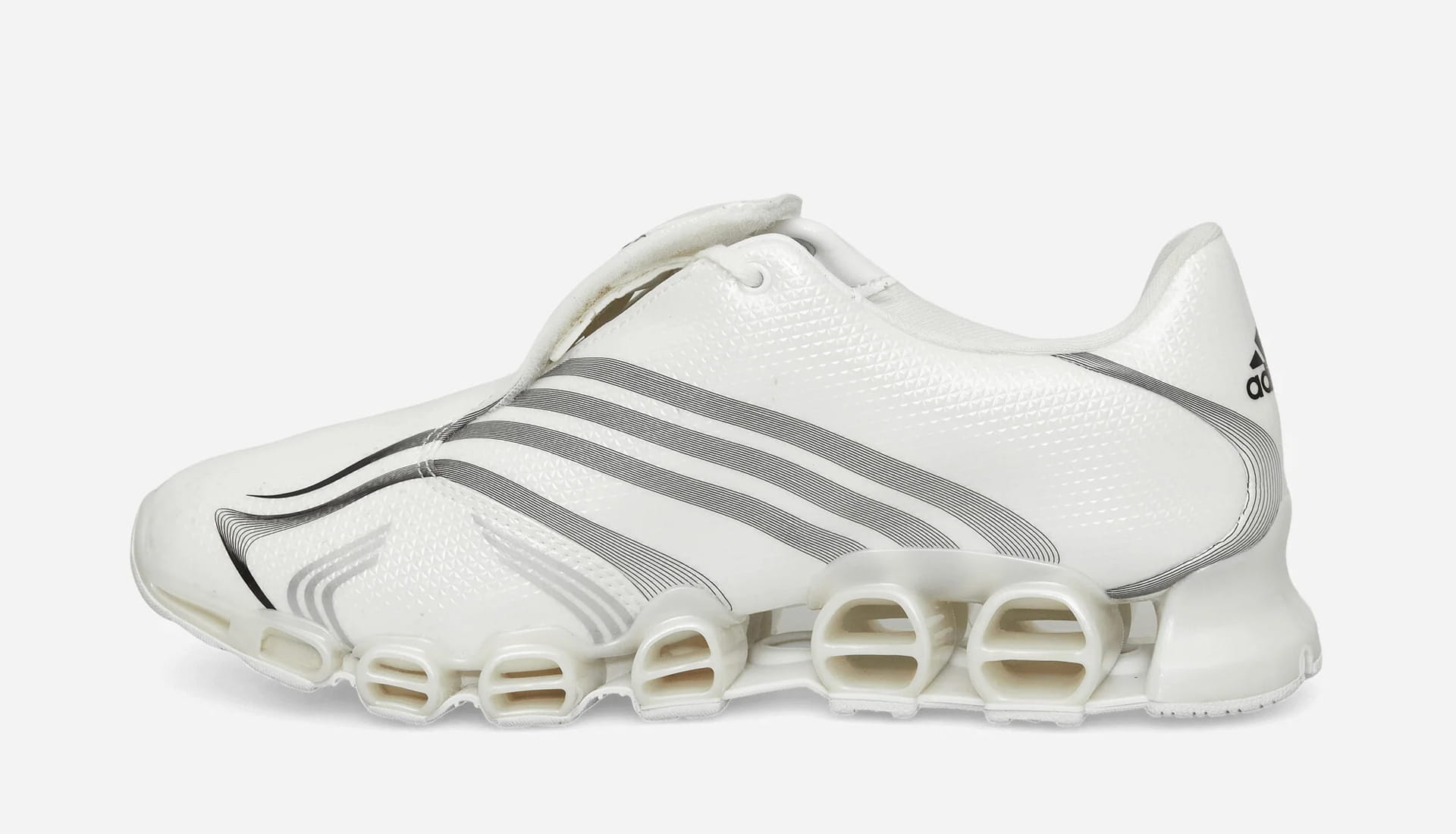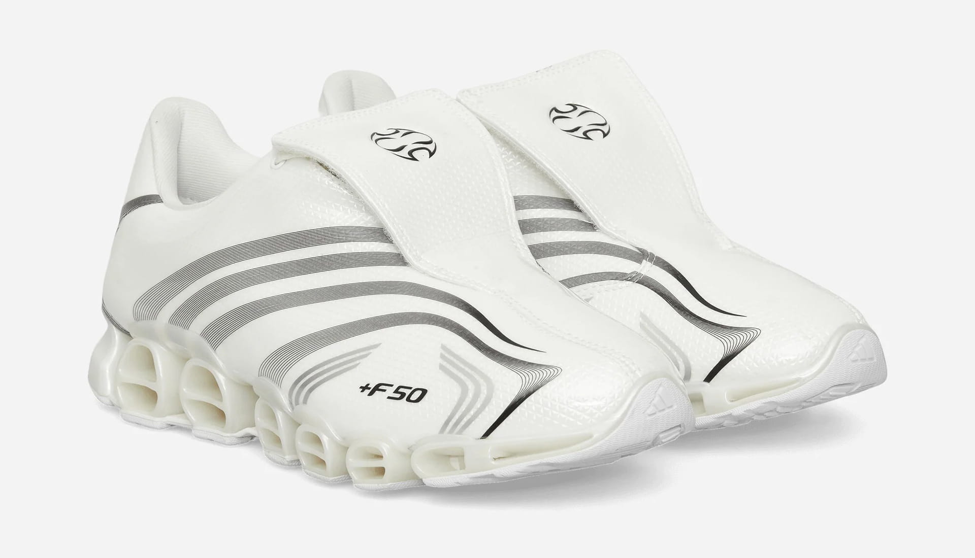 At the heart of the pack sit two versions of the adidas x Slam Jam F50 Tunit Mega Consortium Sneakers. Instantly recognisable, the Tunit silhouette returns with updated Megaride tooling, transforming a once-pure performance boot into a statement street sneaker.