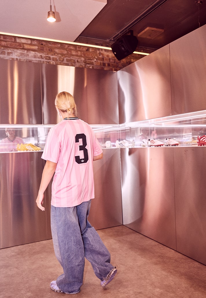 Inside the pop up was an explosion of colour. Walls drenched in pink, transforming the venue into a striking installation that looked straight from Beck’s Miami. The design blurred the lines between retail and gallery, making every corner a photo opportunity. If you delved deeper into the venue, you would find an area where David Beckham’s career came to life, as adidas and Pro:Direct displayed ‘The Archive’. There, all of Beckham’s iconic boots worn throughout his career sat behind glass walls, taking consumers on an immersive journey through his footballing days.