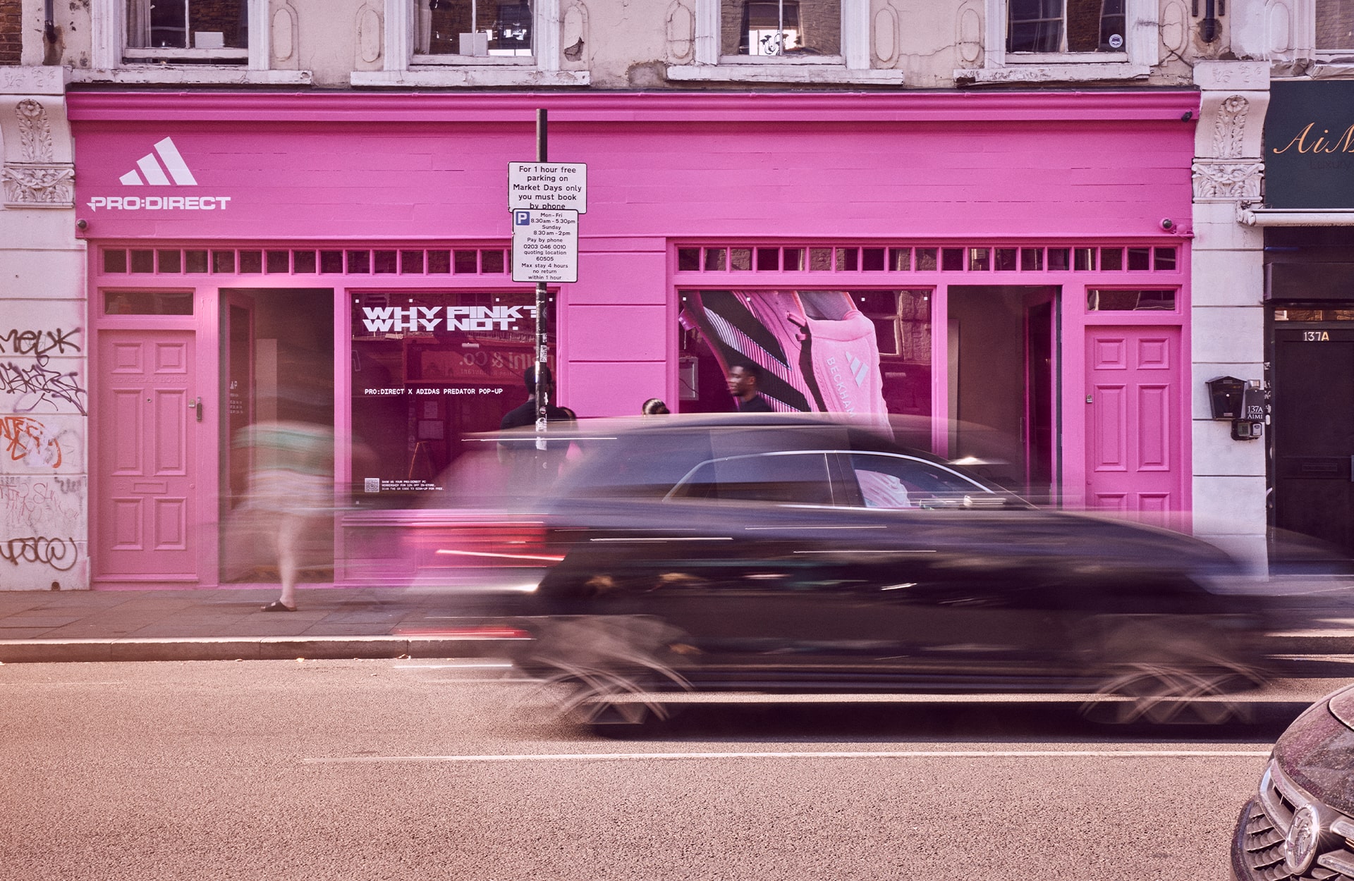 Shoreditch turned pink as adidas and Pro:Direct linked up to celebrate the Predator’s latest evolution – a bold Miami-inspired David Beckham singature. For three days only, 133 Bethnal Green Road became an immersive all-pink pop-up, blending archive nostalgia with future-facing design, giving fans a chance to step inside the world of one of football’s most iconic boots.