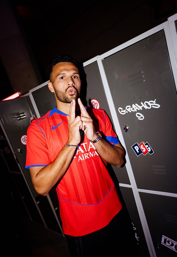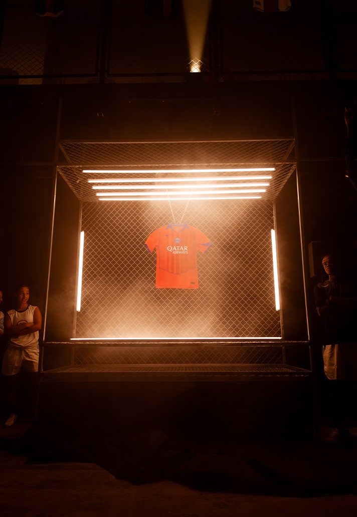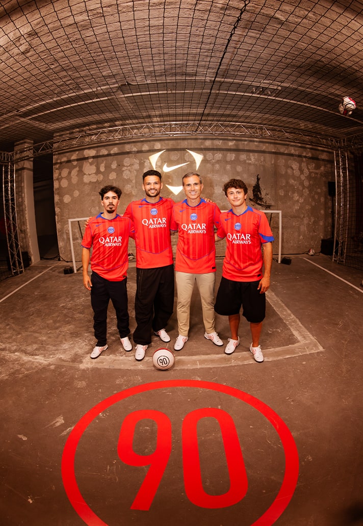 This event didn’t just bring nostalgia, it immersed fans into an era where rebellion thrived, taking us straight back to Total 90, when joga bonito and street football ruled. If you know, you know. This event was all about retro décor, rustic surroundings, and serious ballers. But taking the spotlight was the bold new third kit, where Total 90 aesthetics were met with a sharp, modern look, ready to take on the new season. The shirt itself fashioned a vivid red paired with popping blue accents, and of course that unmistakeable T90 detailing. Its nostalgia remastered, bridging past, present, and future. The unveiling was framed inside the rustic walls of the location, rewriting the rules of a kit launch completely. This shirt belongs as much to the streets as it does the Parc des Princes.