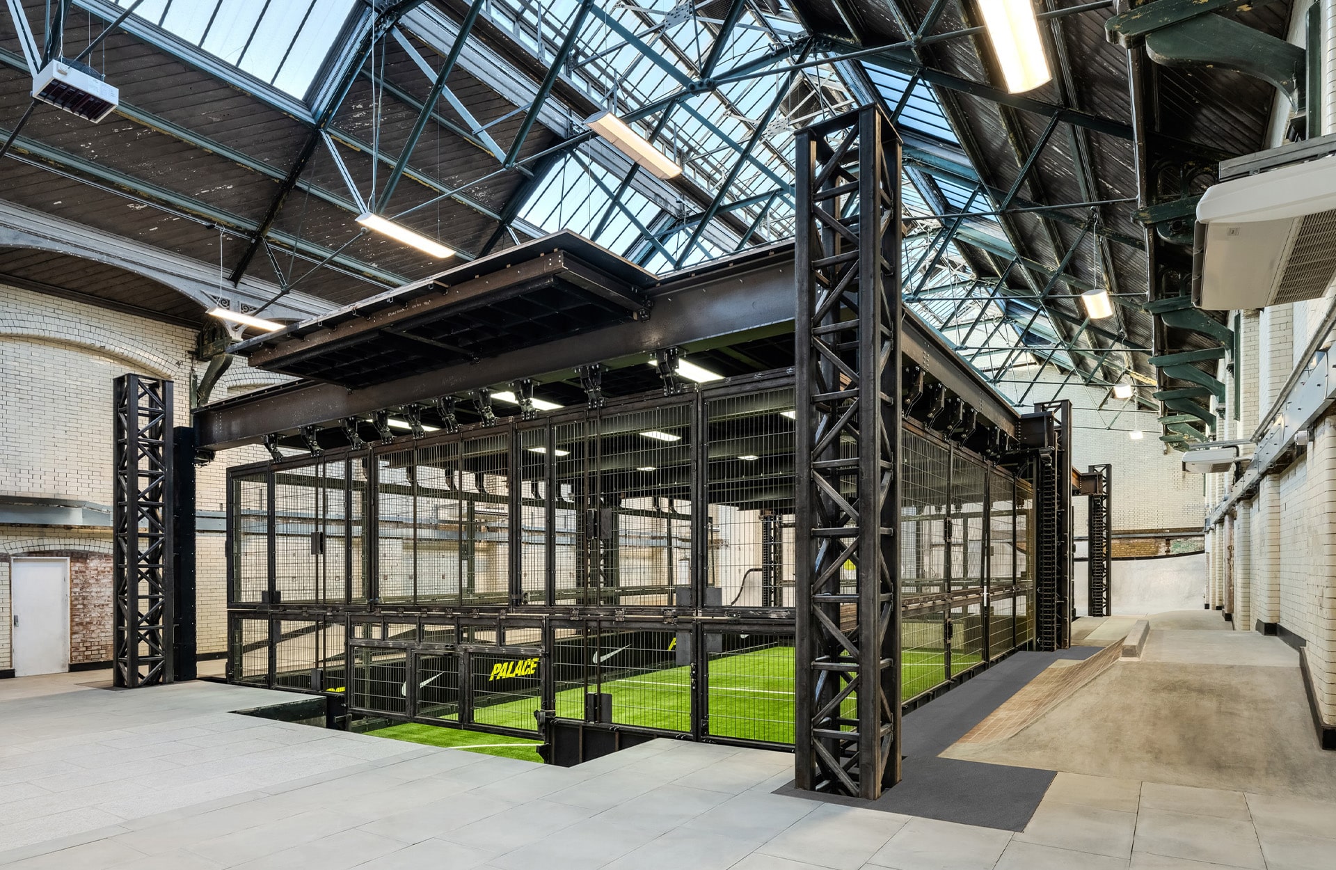 At the heart of Manor Place sits ‘The Park and The Cage’. A double layered fusion of movement where skate and football collide like never before. Up top, a world class concrete skate park nods to London’s most iconic spots: Southbank, Stockwell, and the much-missed Victoria Benches. Here they have all been reimagined through Palace’s contemporary lens. Below, hidden beneath the surface, lives ‘The Cage’ – an underground football zone perfect for those 3v3 matchups, community leagues, or any open sessions. It holds all that South London energy. When matchday hits, The Cage rises, literally, transforming the venue into an arena for the best ballers in the Capital to test their touch. It’s the type of setup that screams freedom.