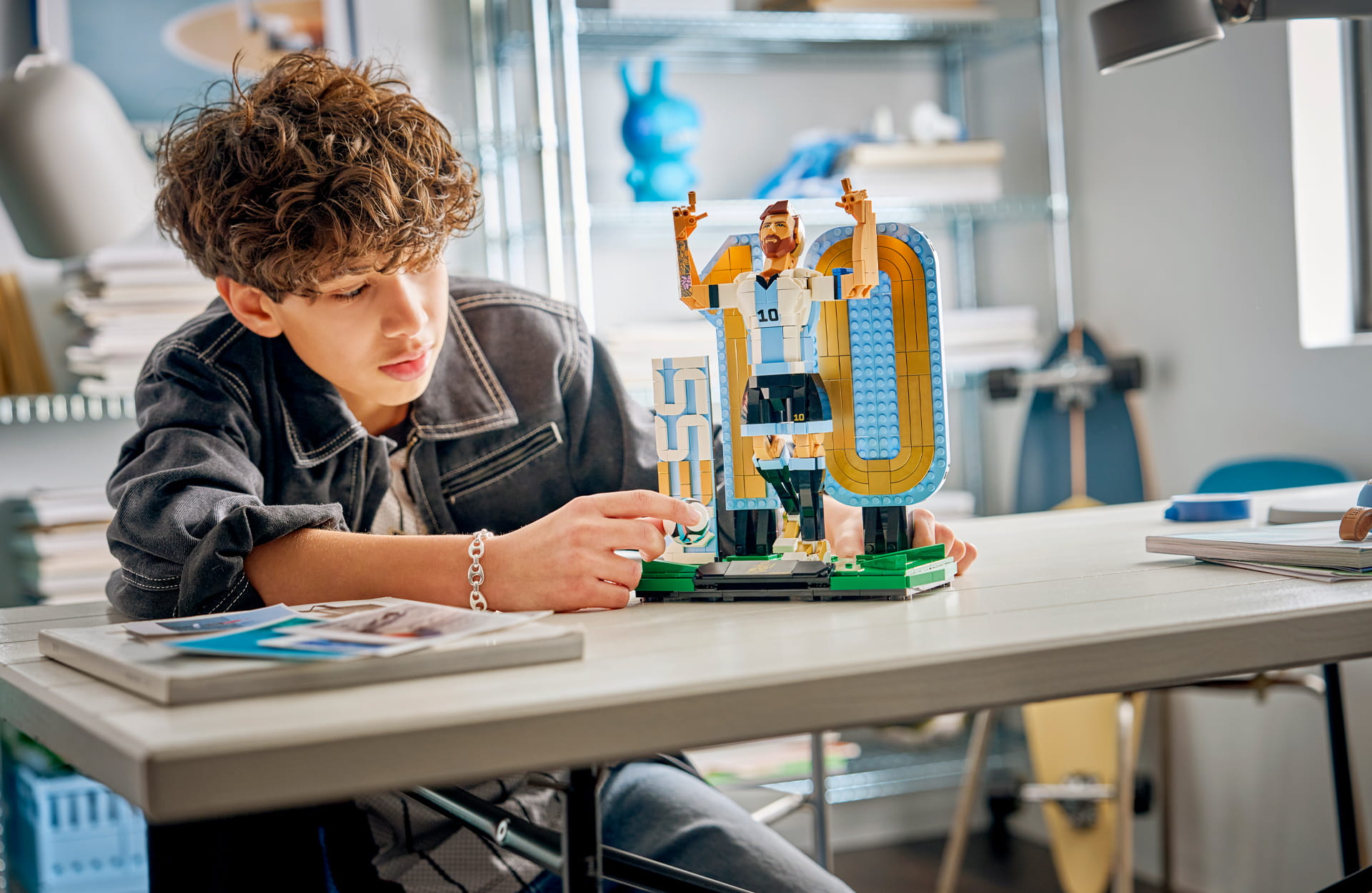 The Messi model is made of 958 LEGO elements (now now, it’s not a competition!). Again, it can be built in two ways: one that creates the Messi figure in his signature victory pose pointing towards the sky after scoring a goal and the other a dynamic running pose that reenacts him dribbling across the pitch. The set also includes a large number 10, MESSI lettering, and printed name plaque.