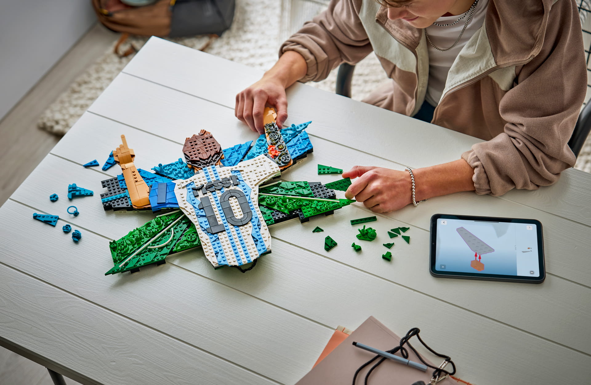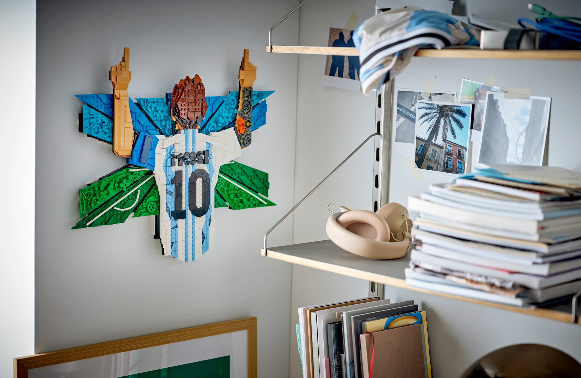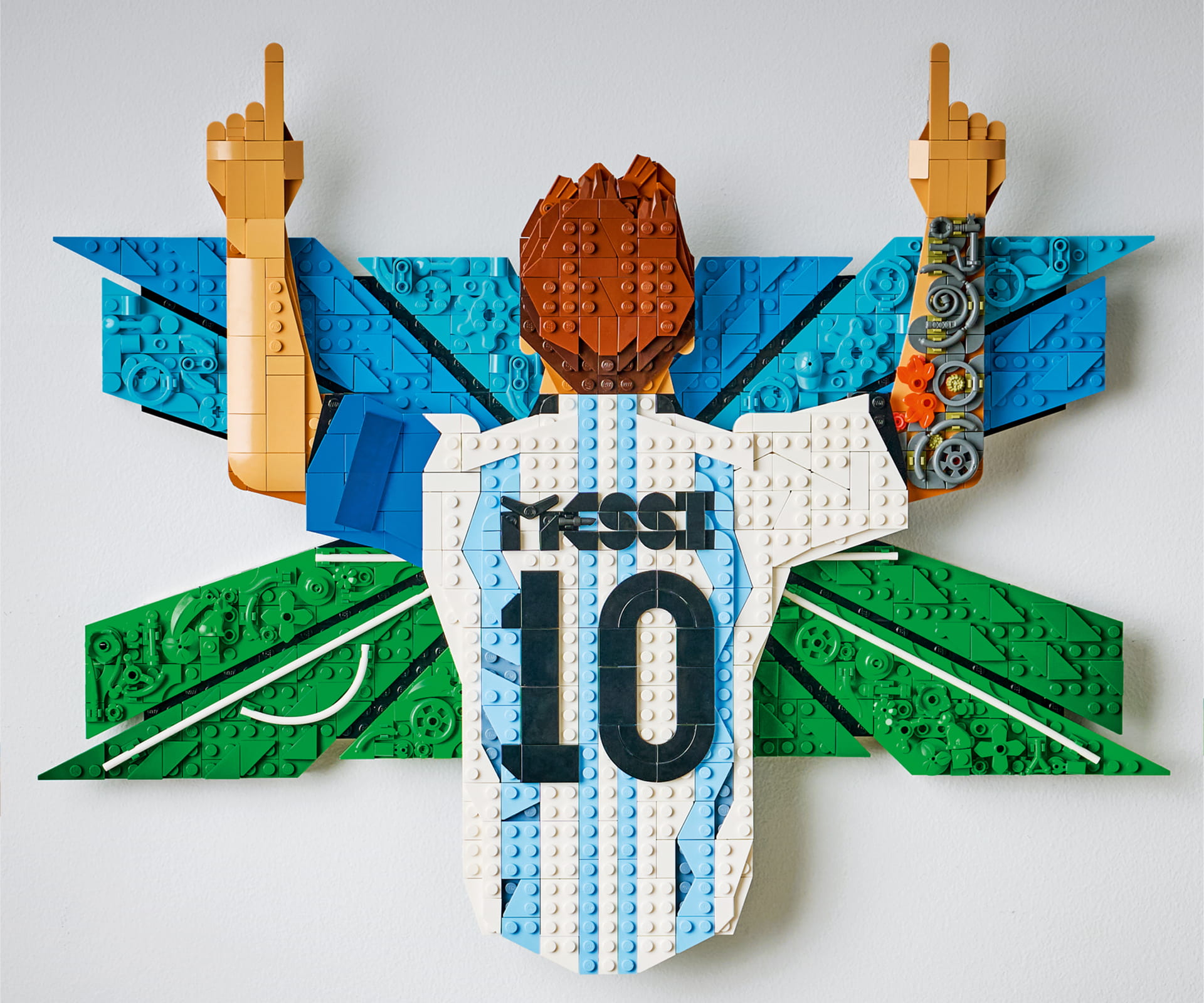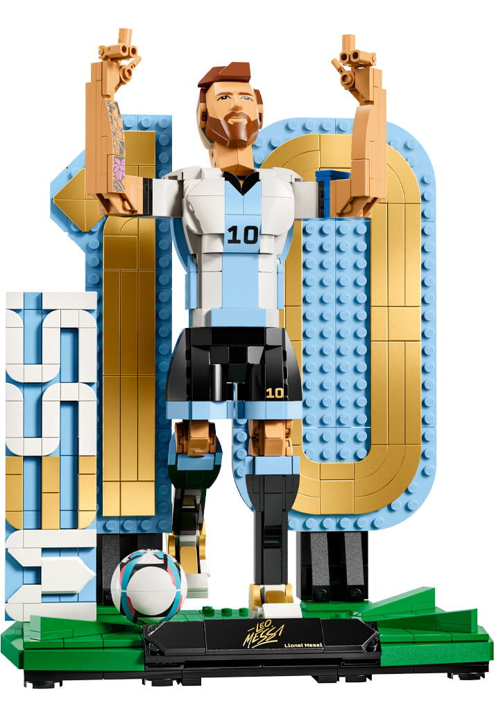 Finally, completing the collection options is a Lionel Messi “Celebration” set. This one is the real showpiece. The fact it’s aimed at 14+ builders hints at its slightly more complex nature and also its positioning as a proper piece of 3D wall art. The 1,427-element set features Messi once again in his signature victory pose, pointing toward the sky. The display highlights his iconic “Number 10” striped jersey and is packed with Easter eggs that nod to his life and career.