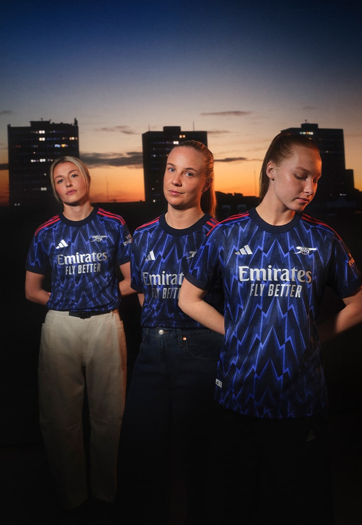 Juergen Rank, Senior Design Director at adidas, said: “For this season’s away shirt we wanted to create something nostalgic, leaning on the lightning bolt graphic and reinterpreting it in a fresh and contemporary way for the modern era of Arsenal supporters. The pattern and navy colourway have become synonymous with some of the club’s most iconic shirts of the past, and we hope supporters of the club love it as much as we do. We’re really excited to see it worn on-pitch and in the away stands this season.”