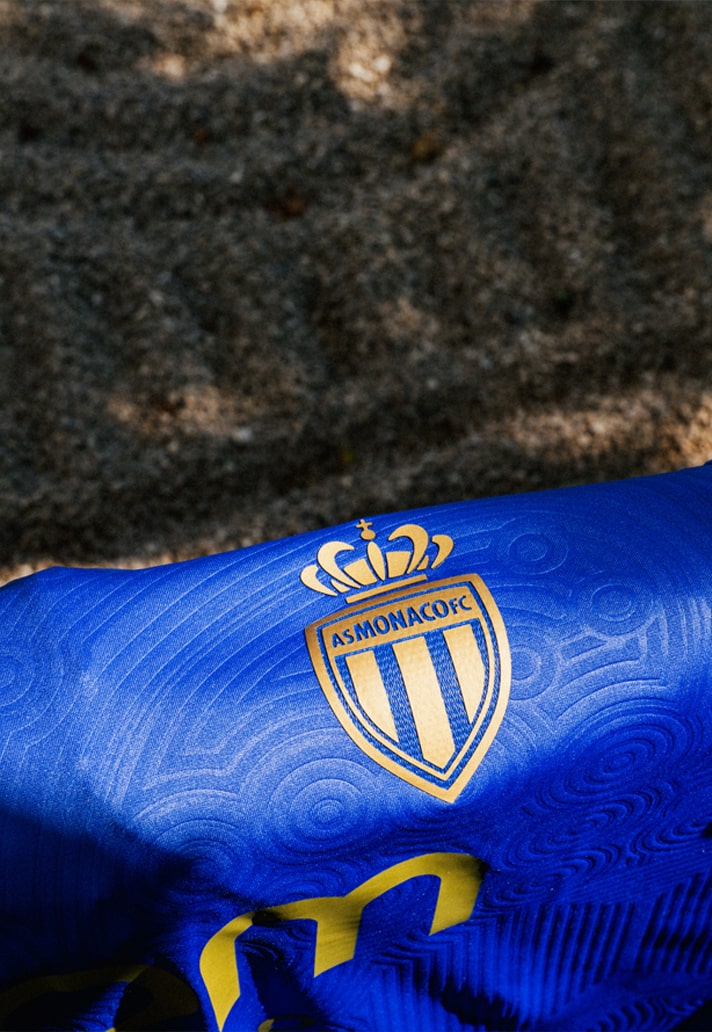 Dominating the palette is a deep, composed blue — a colour synonymous with the “Blue Samurai”, Japan’s national team, of which Mizuno is a historic partner. In Japanese culture, this shade is more than just a hue — it’s a code of values: excellence, honor, and resilience. For AS Monaco, it offers a bold departure from the norm, yet one that feels entirely fitting in this era of global elegance and cross-cultural storytelling.