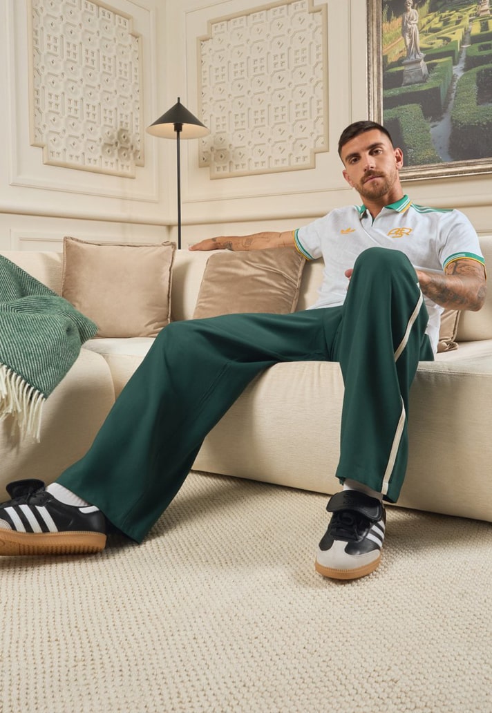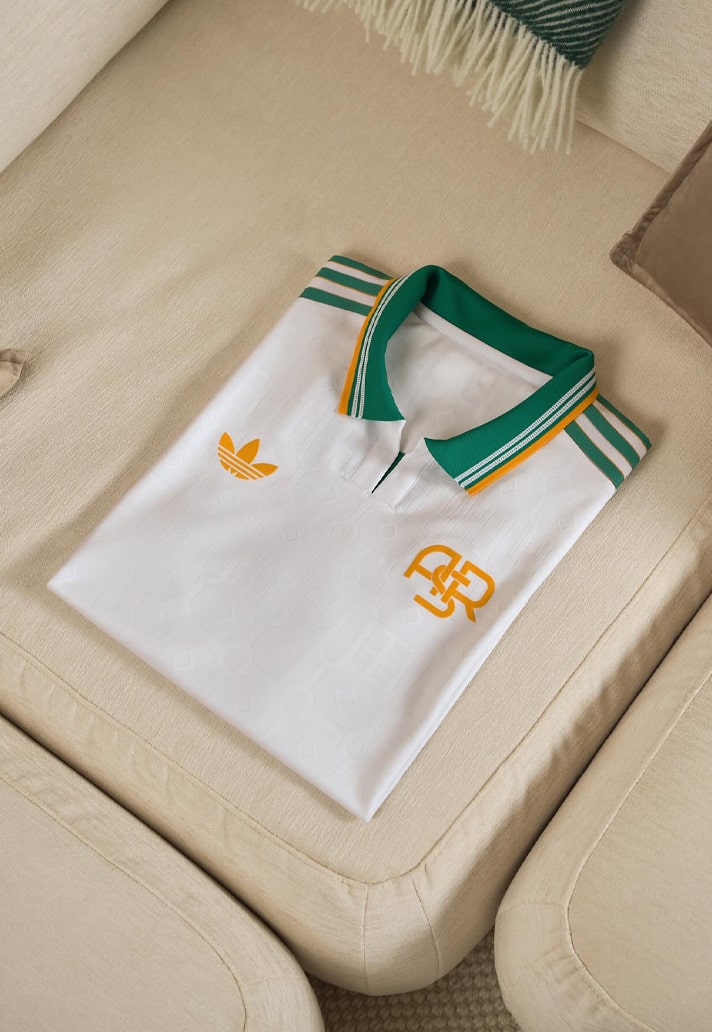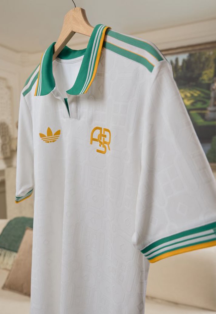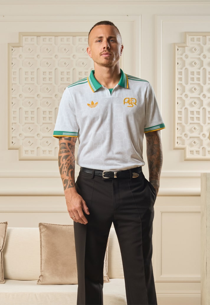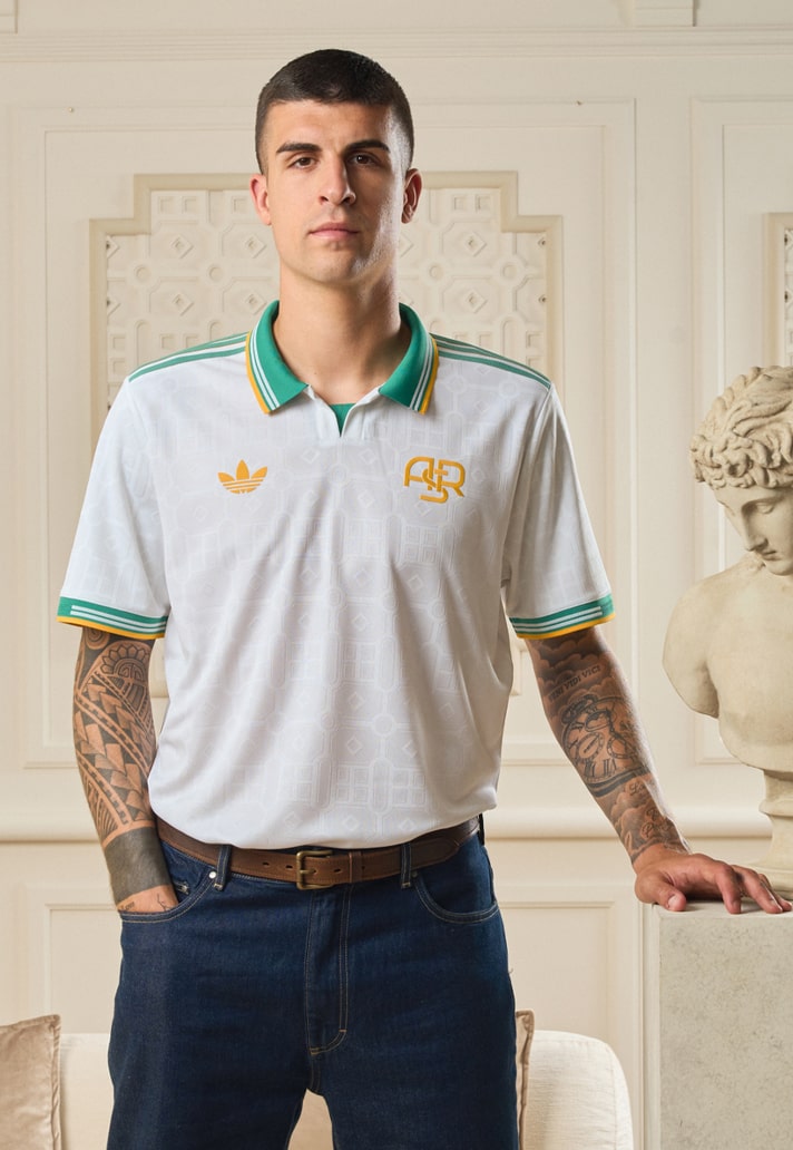 The new third shirt channels the calming yet vibrant soul of Rome’s villas with an intricately patterned design that echoes the geometric forms of traditional Italian gardens. The base shade — a rich, earthy green — serves as a canvas for sharp contrast details. Cue the classic adidas three stripes on the shoulders and the revived adidas Originals logo, both delivered in a striking yellow that also frames the iconic "ASR" trigram on the chest. It’s retro, reworked — and unmistakably Roman.