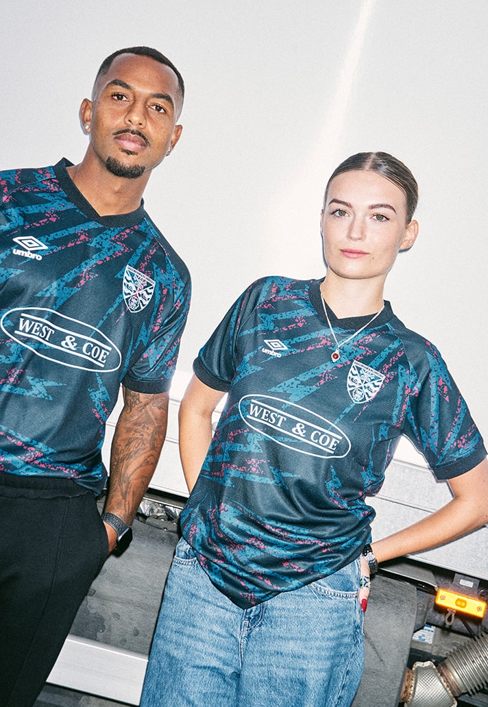 Designed by creative director Ed Cowburn in collaboration with cult football collective Acid FC, this kit revives the energy that once blessed the town and turns it into a work of art. The new away shirt arrives cloaked in a deep, coal black, nodding to the ebonite that was once used in the factory. It gives us that raw feeling of smoke-stained overalls and steel-toed boots. But what lights up this kit is the lightening graphics that streak across the shirt in tonal Daggers colours, reimagining the physical charge that once ran through the streets. East London industrial heritage to the max. It's unique design is completed with the classic club crest sign off alongside the signature Double Diamond logo.