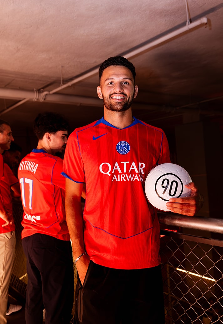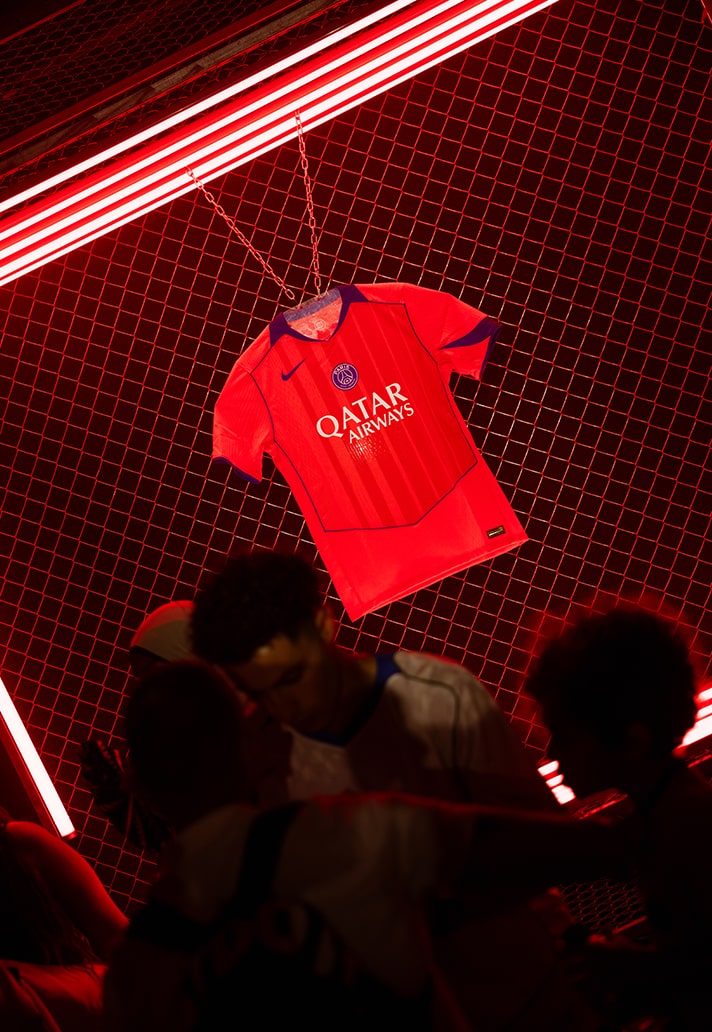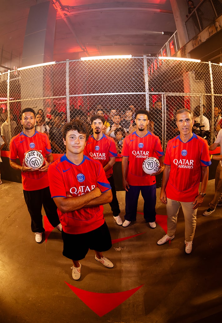 To mark the launch, PSG and Nike took the game to the underground of Paris football with ‘La Cage’, bringing real Les Parisiens together at a secret location for an immersive event that won’t be forgotten any time soon. The location, an abandoned building amongst the hustle and bustle of the Champs-Elysees, was kept under wraps with only a select few invited to the occasion. Inside, attendees were transported back 20 years into an atmosphere filled with rebellious T90 energy. There, the new third kit was unveiled in all its glory, made even more special with the arrival of current PSG stars Gonçalo Ramos, João Neves, Vitinha, and Warren Zaïre-Emery alongside club legend Pauleta. What a lineup. A handover of legacy between generations.